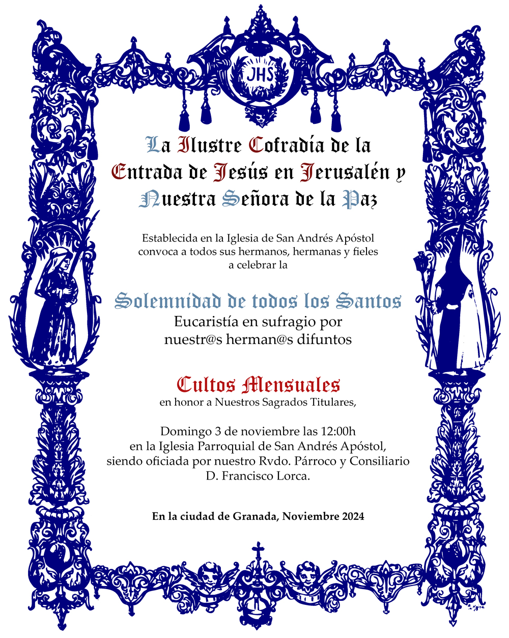 CULTOS MENSUALES: SOLEMNIDAD DE TODOS LOS SANTOS. EUCARISTÍA EN SUFRAGIO POR TODOS LOS DIFUNTOS.