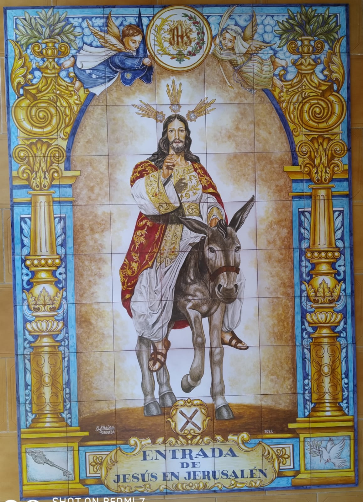 El pasado 13 de noviembre del 2022 a las 13:00h se bendijo el retablo cerámica de Jesús en la entrada en Jerusalén que se ha instalado en la futura plaza "Niños Hebreos", en la fachada del alojamiento turístico la Flor del Naranjo.