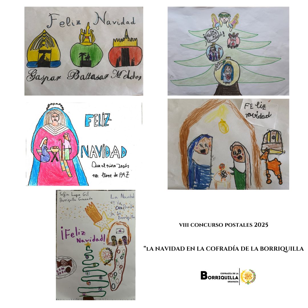 Podéis ver todos los dibujos además de en esta noticia podeis verlos aquí https://www.borriquilla.es/galeria/ganadores-del-viii-concurso-postales-de-navidad-2025