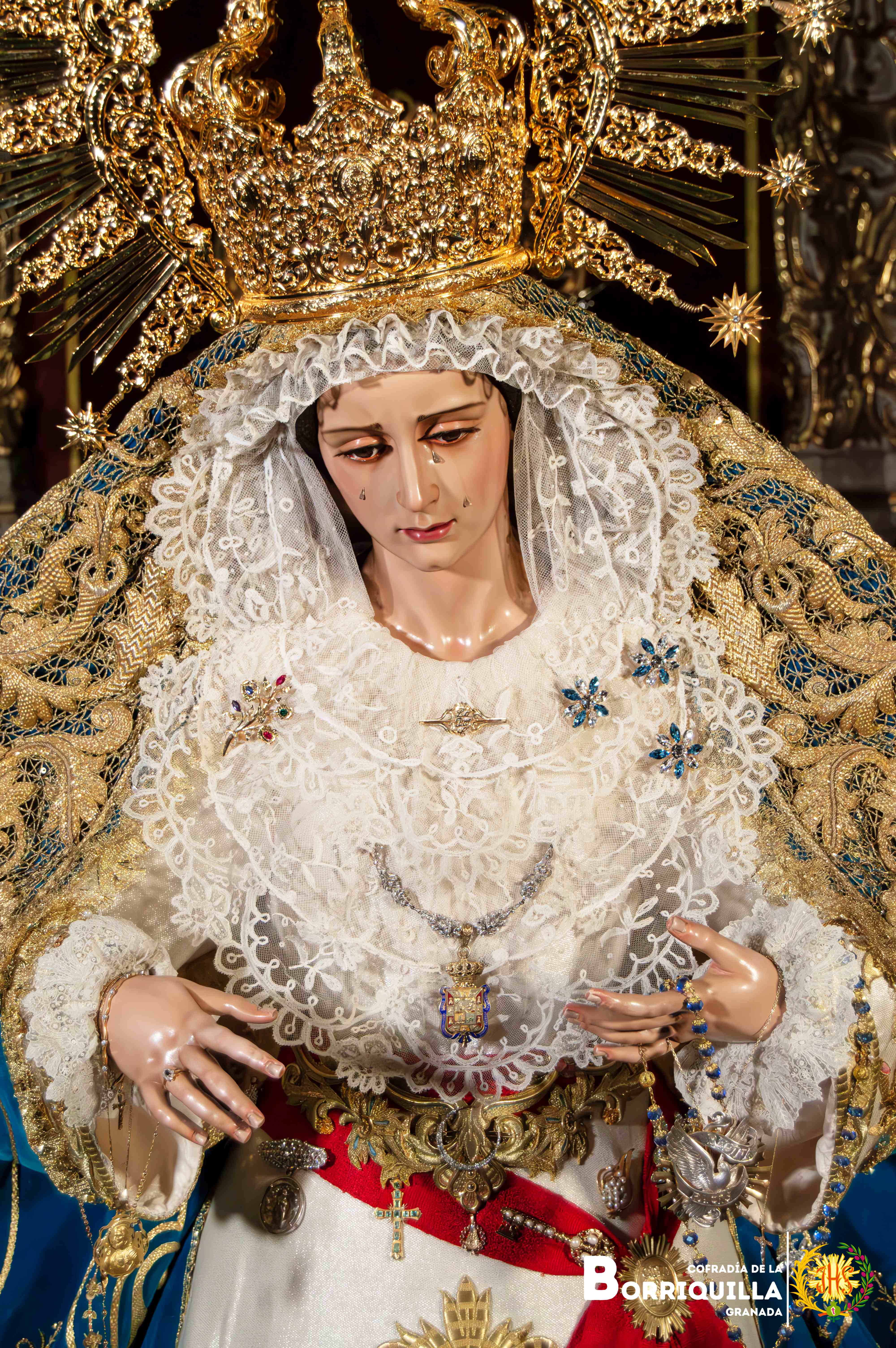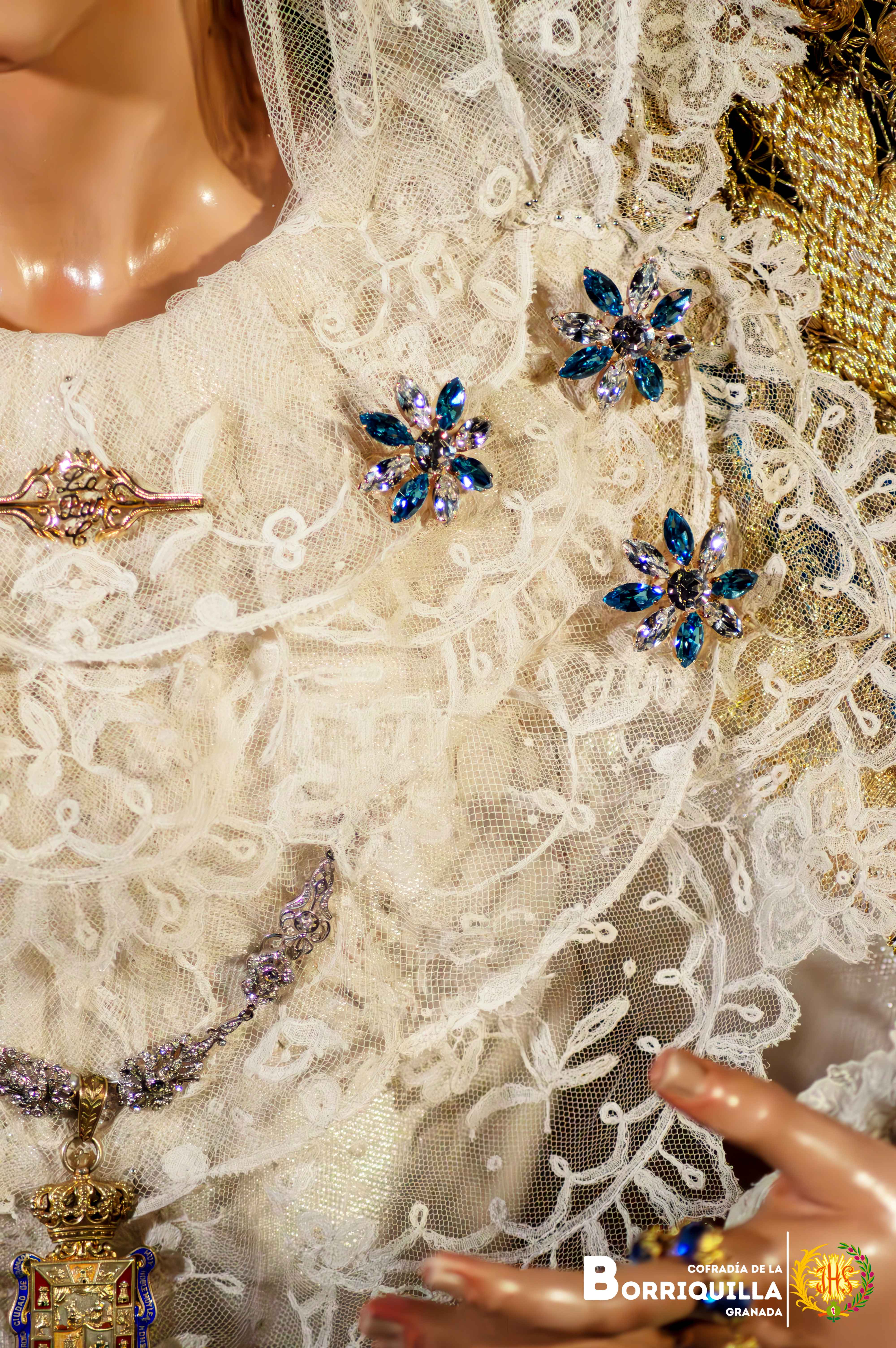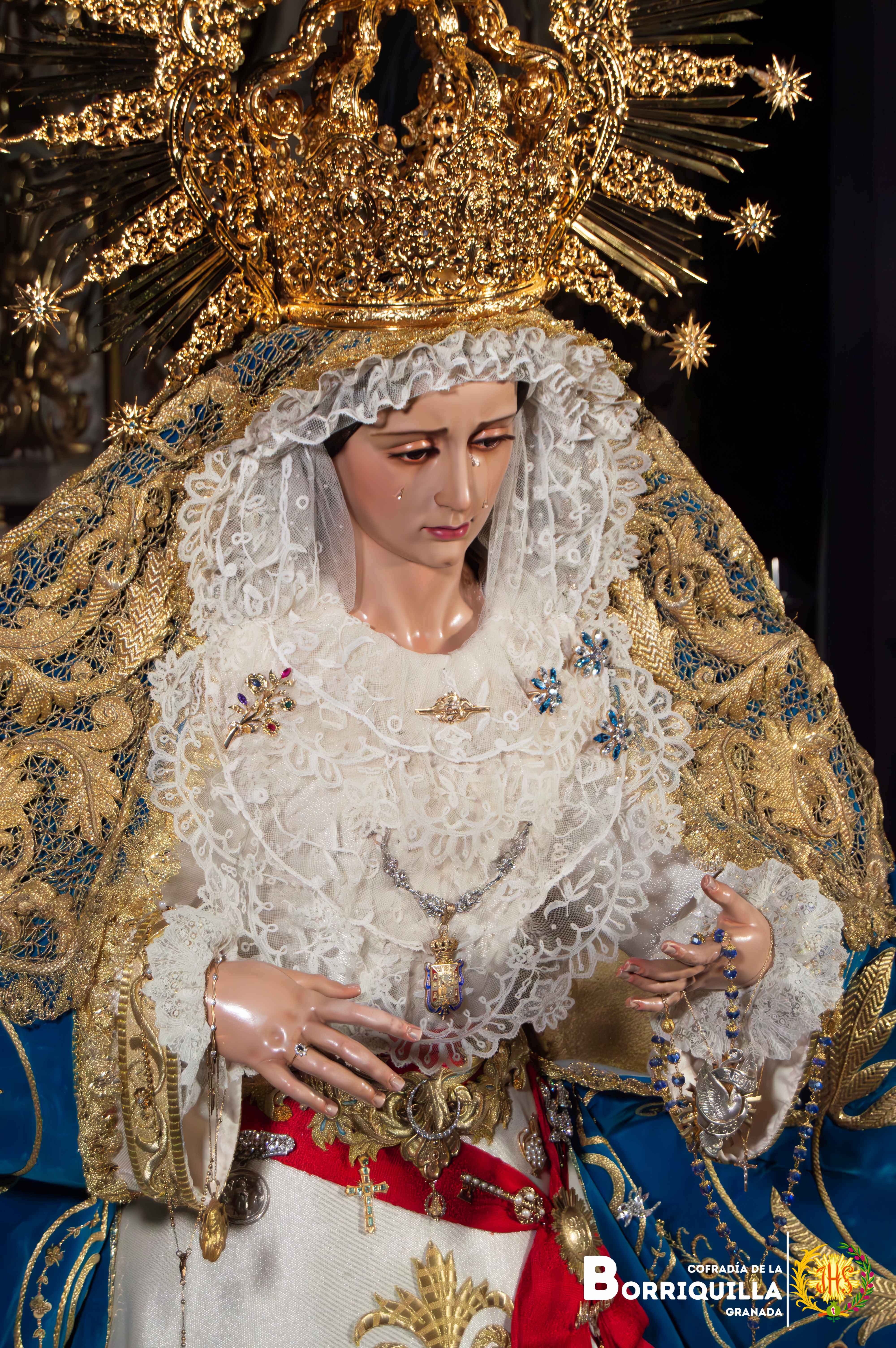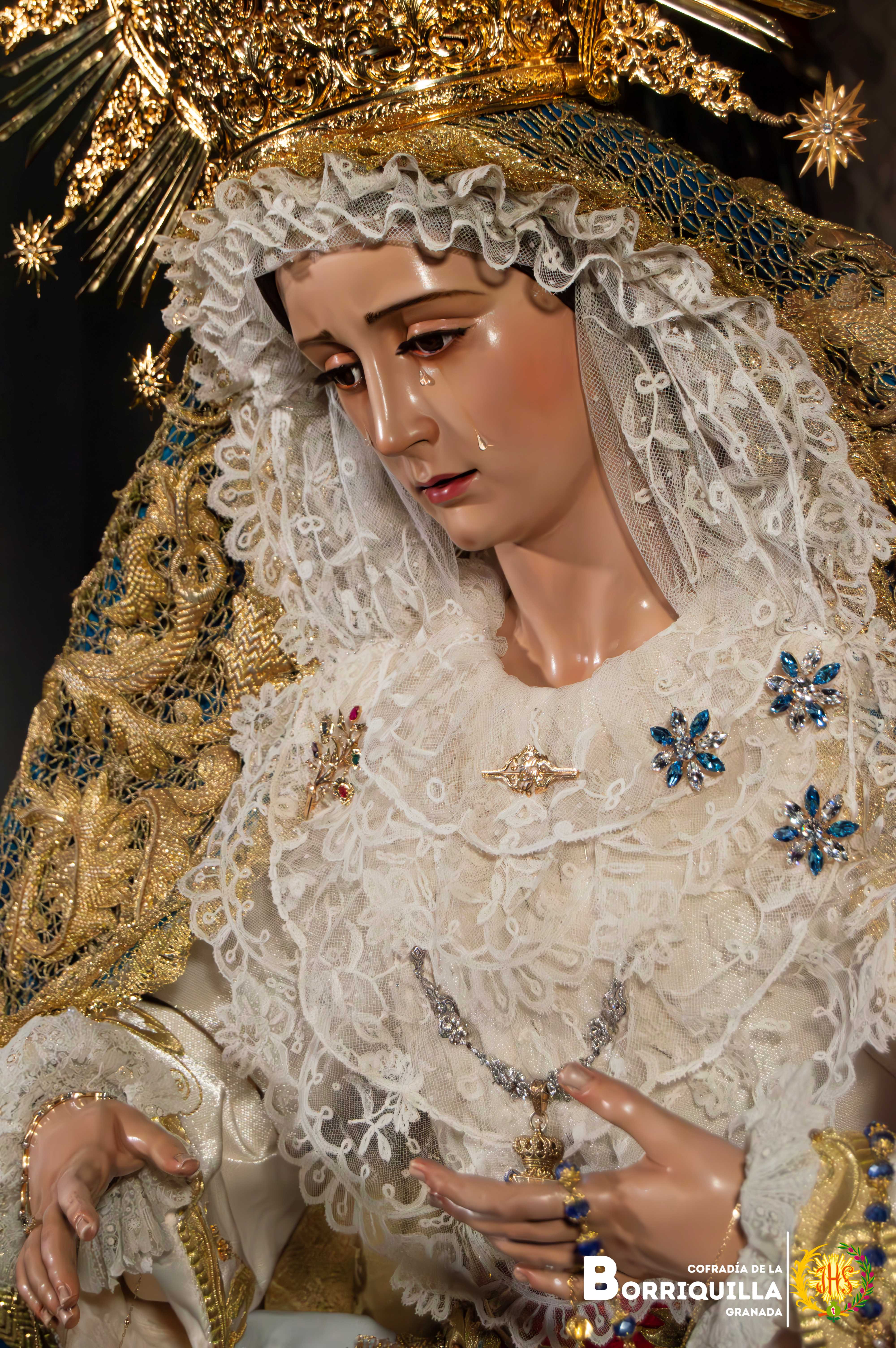 Como novedad, estrena unas tembladeras elaboradas con piedras preciosas en todos azules y blancos donadas por un hermano de la cofradía, además, del estreno de la peana de besamanos y cultos elaborada por Paula Orfebres de la localidad cordobesa de Lucena.