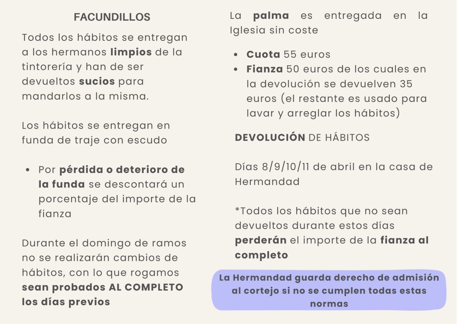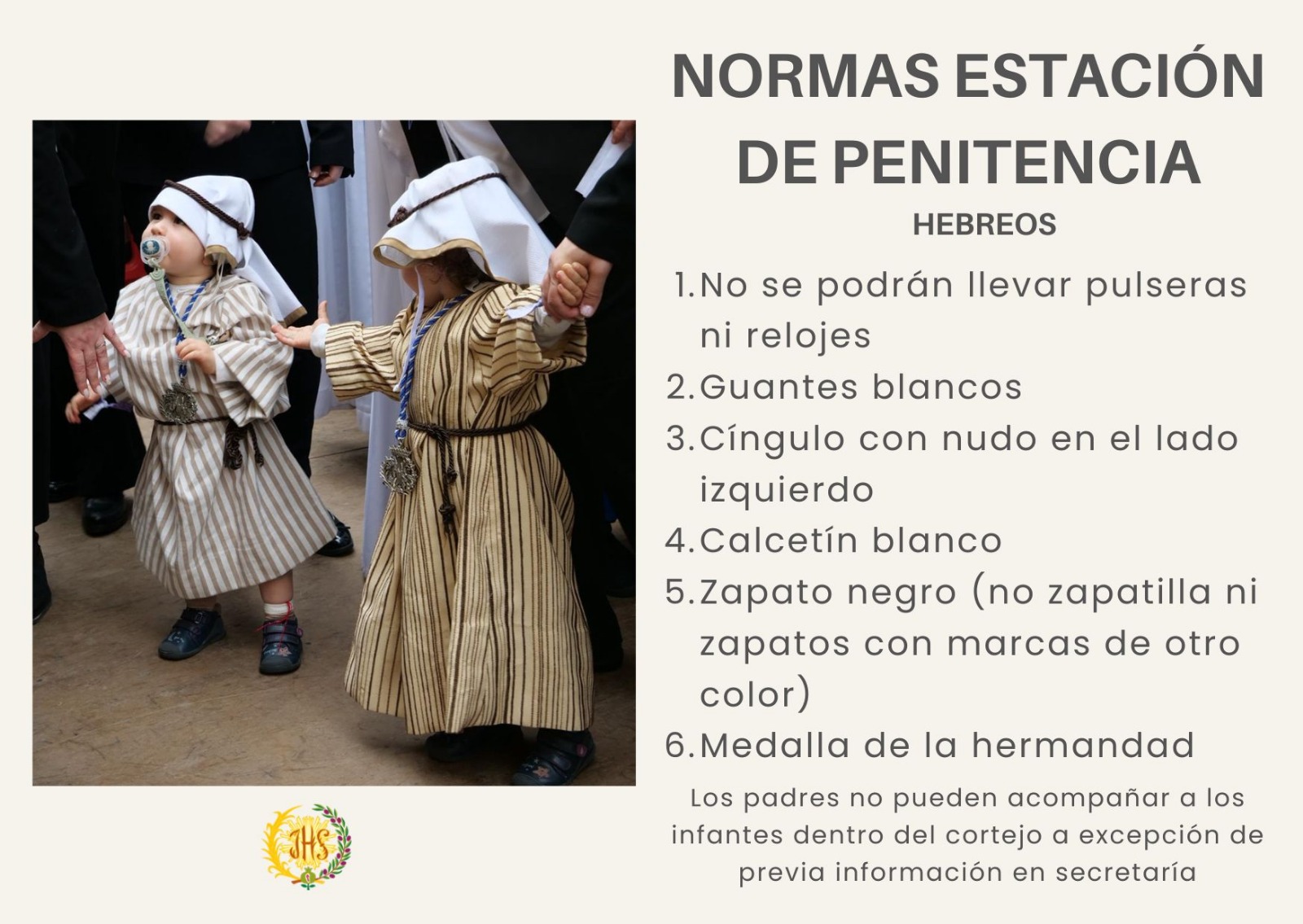 Es muy importante que leais todas las normas para la estación de penitencia. Mirar bien los dibujos y las fotos dónde viene todo bien explicado.