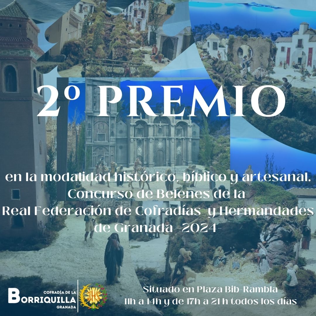 El domingo 15 de diciembre, la Real Federación de Hermandades y Cofradías de Granada ha anunciado los ganadores del Concurso de Belenes "Pasión por la Navidad 2024". El Jurado ha otorgado al Belén Granadino de la Cofradía y de la Parroquia, situado en la Plaza Bib-Rambla, el Segundo Premio en la modalidad histórico, bíblico y artesanal.