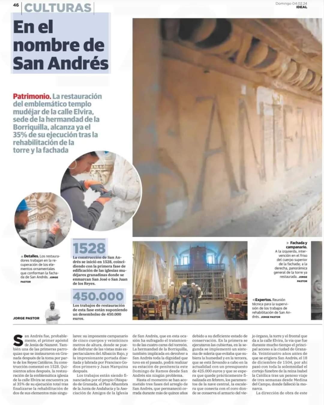 Hoy, Domingo 4 de Febrero, el periódico local publica un extenso artículo sobre el estado de la restauración de la Iglesia de San Andrés Apóstol.