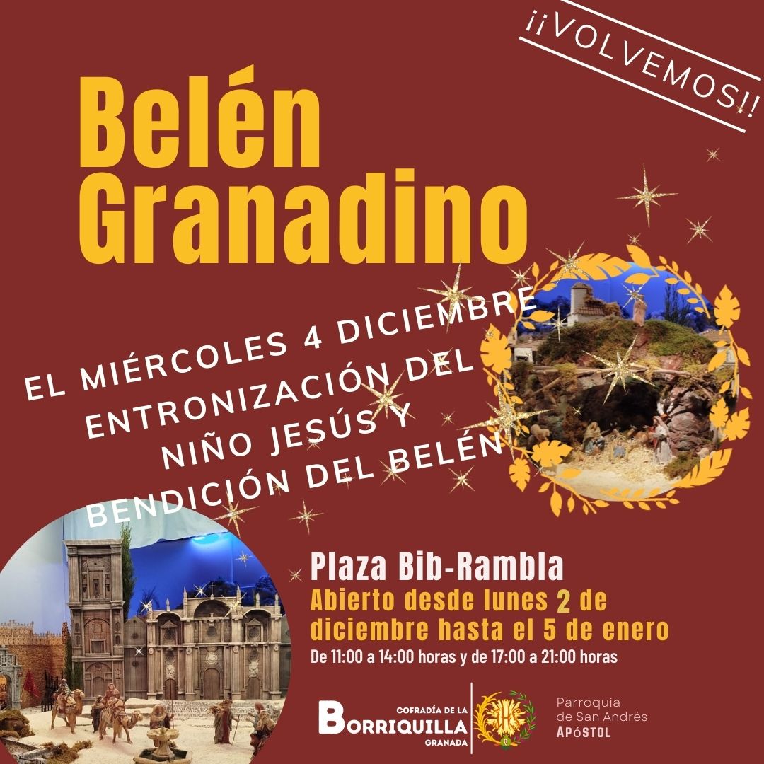La cofradía junto a la Parroquia de San Andrés presentan el Belén Granadino situado en Plaza Bib-Rambla a beneficio de la restauración de la Iglesia de San Andrés Apóstol.