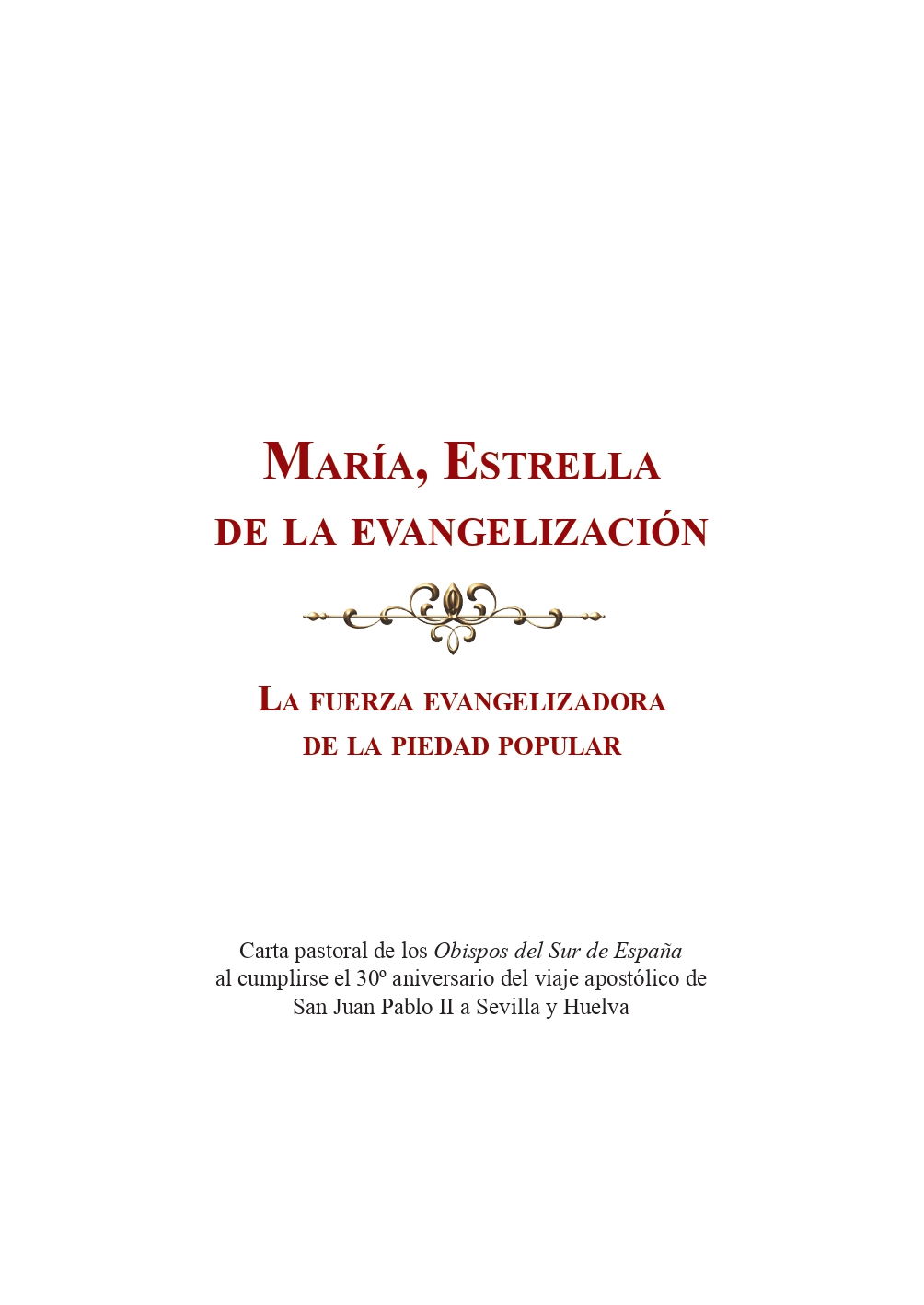 Coincidiendo con los días en los que se cumple el treinta aniversario del cuarto viaje apostólico de San Juan Pablo II a España, realizado del 12 al 17 de junio de 1993, los Obispos del Sur de España han publicado la Carta pastoral María Estrella de la Evangelización. La fuerza evangelizadora de la Piedad popular. Recuperan algunas de las enseñanzas que el Santo Padre nos dejó, que son estímulo para el tiempo presente y que manifiestan la fuerza evangelizadora que tiene la piedad popular. En aquel viaje apostólico, el Papa San Juan Pablo II visitó Sevilla para clausurar el XLV Congreso Eucarístico Internacional, y Huelva, donde visitó el Santuario de Nuestra Señora de la Cinta y el Monasterio de la Rábida y, como romero, peregrinó al santuario de Nuestra Señora del Rocío.