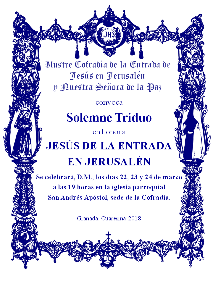 El Solemne Triduo en honor a Jesús de la Entrada en Jerusalén se celebrará, Dios Mediante, esta semana, presidiéndose por el Consiliario de la Cofradía, don Francisco Lorca.
