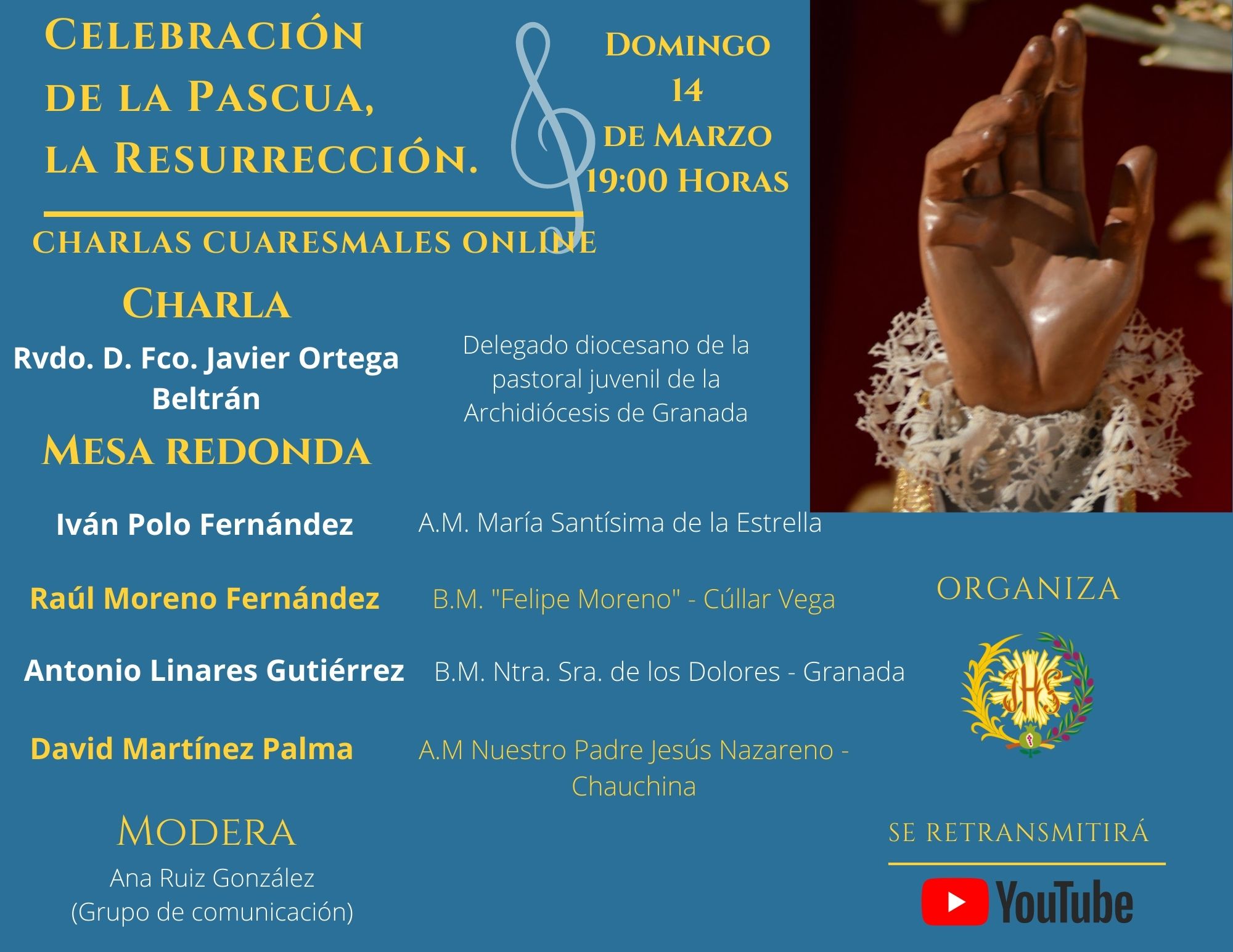 Este domingo, 14 de marzo, a las 19:00h tenemos la Charla online Cuaresmal: Celebración de la Pascua, la Resurrección.
