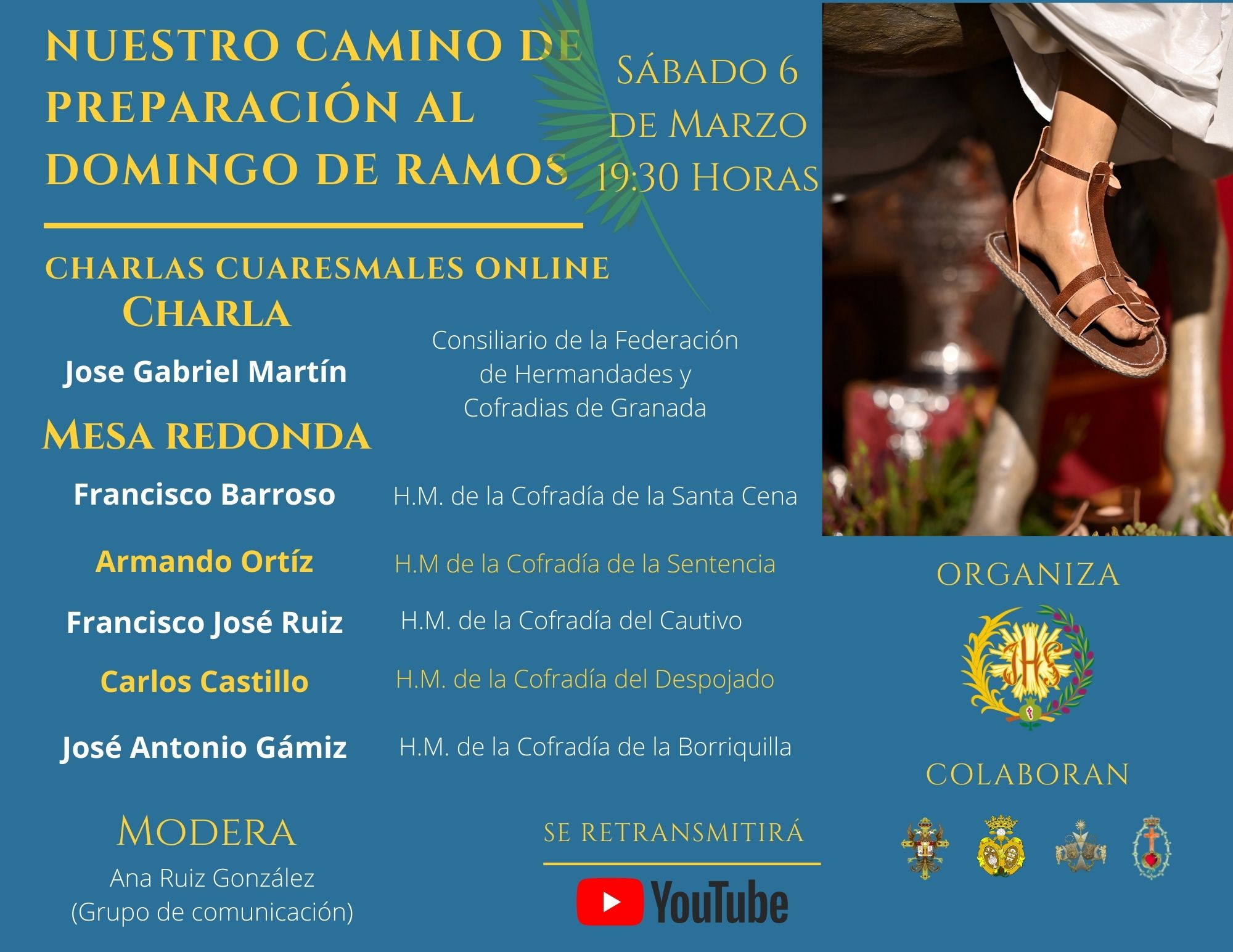 - Charla Cuaresmal: Nuestro Camino de preparación hacia el Domingo de Ramos, 6 de marzo (on line).