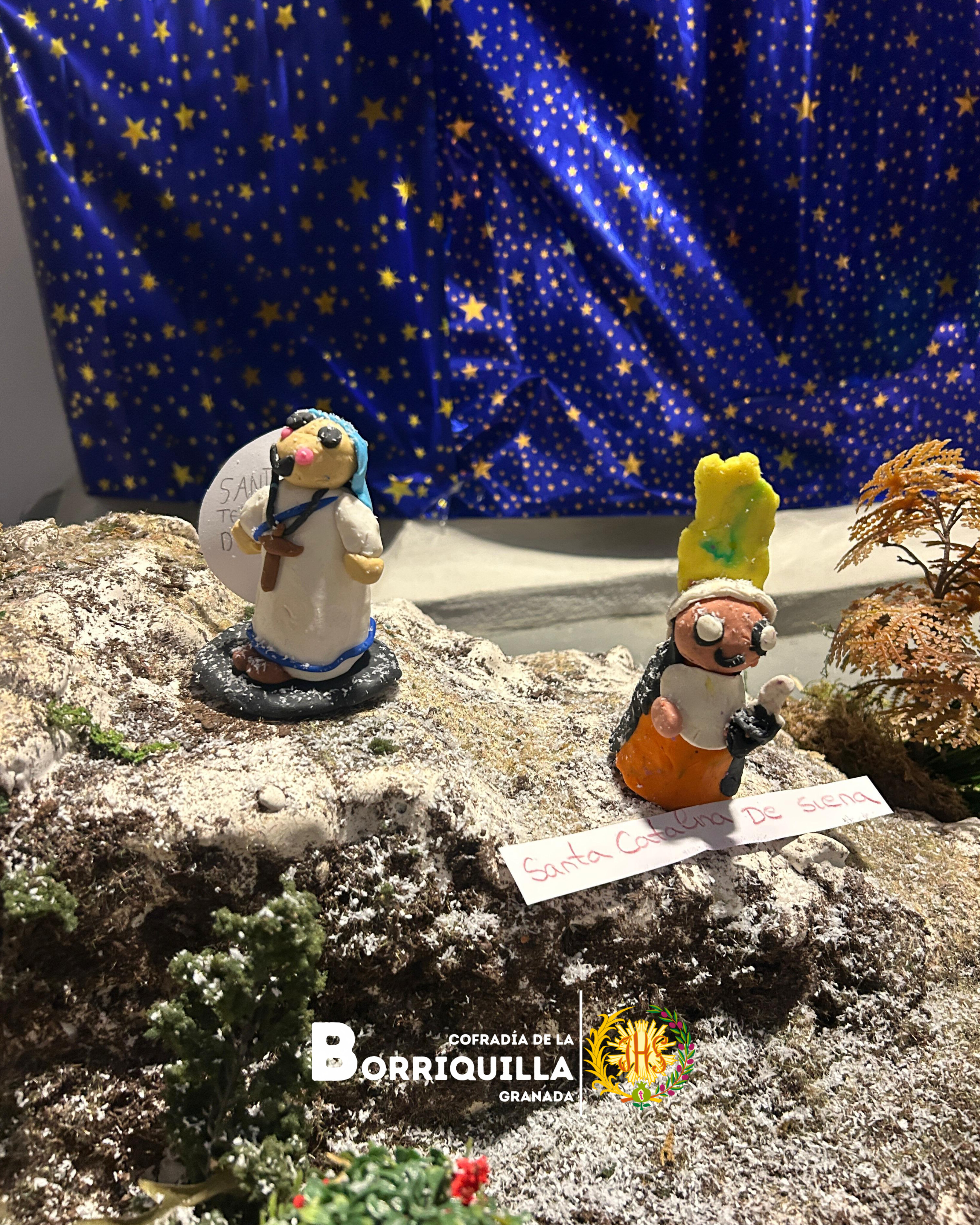 Uno de los aspectos más especiales y valorados del belén ha sido la incorporación de figuras de Santos, también realizadas en plastilina. Estas figuras nacen de la convivencia de Todos los Santos, una jornada formativa y fraterna en la que los más pequeños conocieron la vida de distintos santos y la repercusión de su ejemplo en la vida cristiana, integrando así fe, aprendizaje y creatividad en el belén.