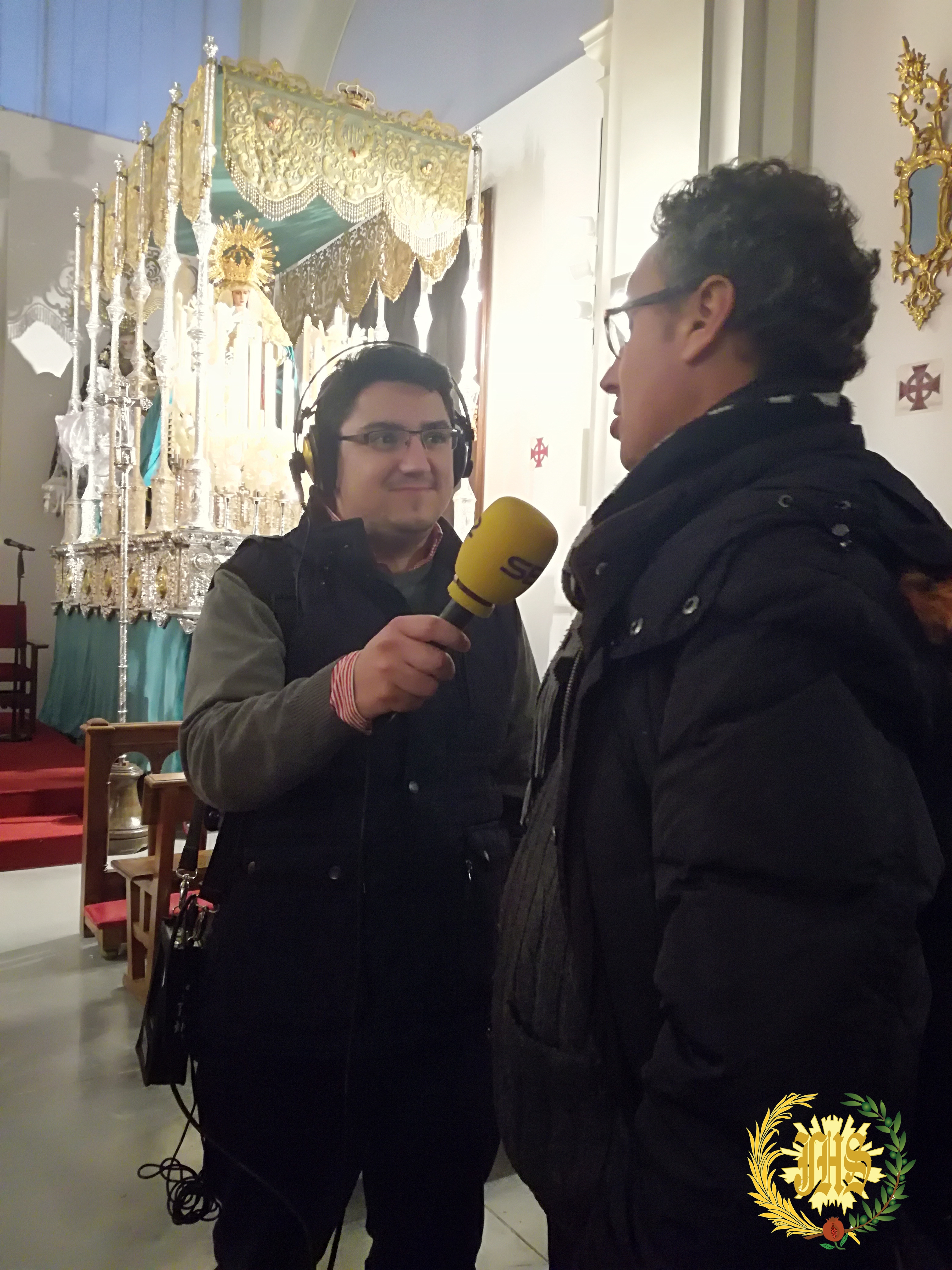 En la noche del 19 de marzo realizamos el tradicional acto de entrega de la llave que abrirá nuestra Semana Santa a la Cofradía de Santa María de la Alhambra. En este año tan especial para nuestra cofradía la cita se ha producido en el interior de nuestra sede, la iglesia parroquial de San Andrés Apóstol en presencia del programa de radio "SER Cofrade" que, como cada año, retransmite el tradicional gesto que muestra los lazos de unión de ambas hermandades. D. Eugenio Almohalla hizo entrega de la llave al hermano mayor de la cofradía alhambreña, D. Rafael Ruíz para que, en escasamente una semana, realice la llamada a las puertas de la iglesia parroquial de San Andrés Apóstol que abran nuestra Semana Mayor.