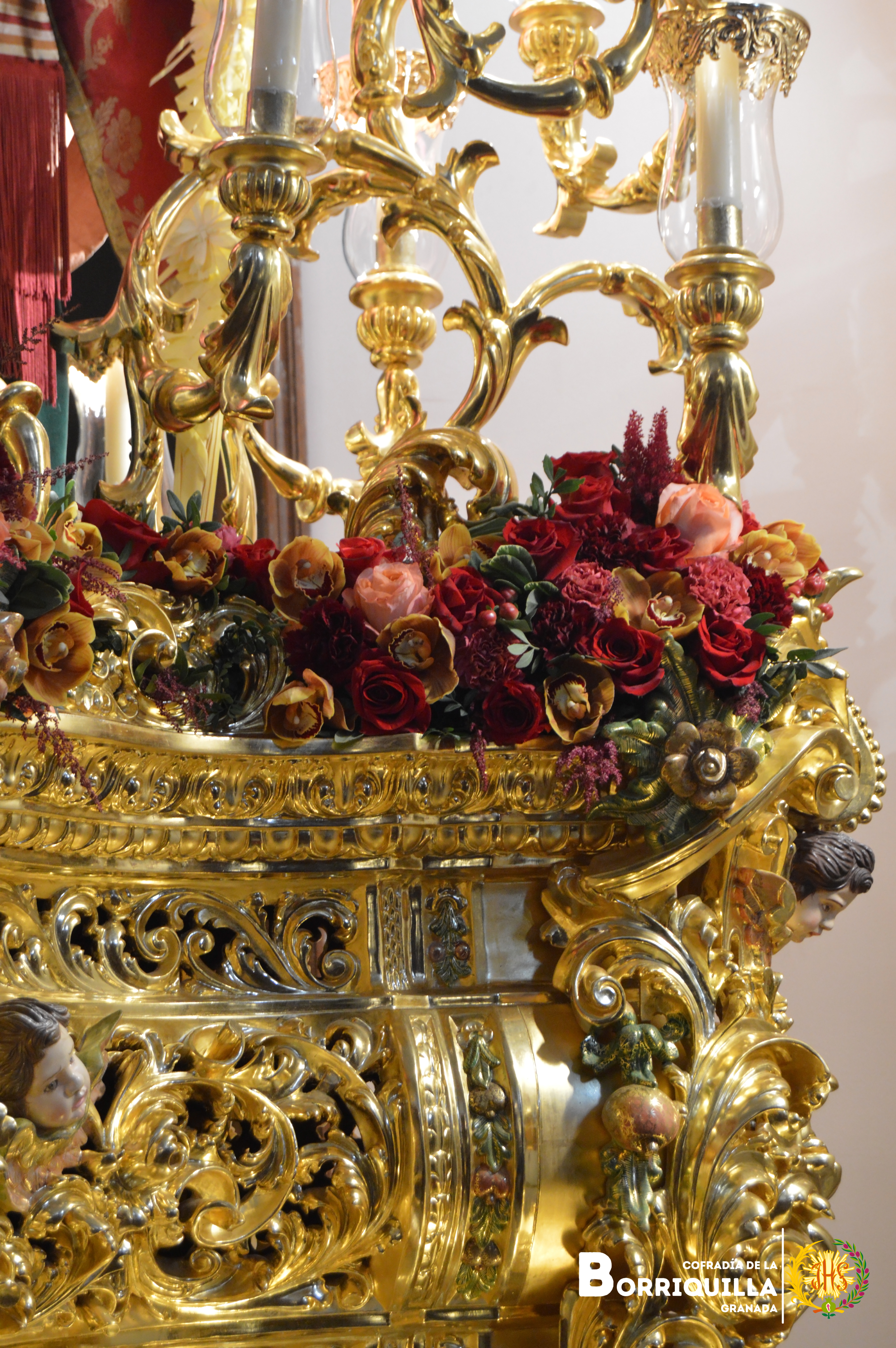 El exorno ha sido realizado por el hermano Francisco Sánchez, quien ha puesto su dedicación y buen hacer en la confección de un conjunto floral que engrandece el paso y subraya el carácter solemne y festivo de este día tan señalado.