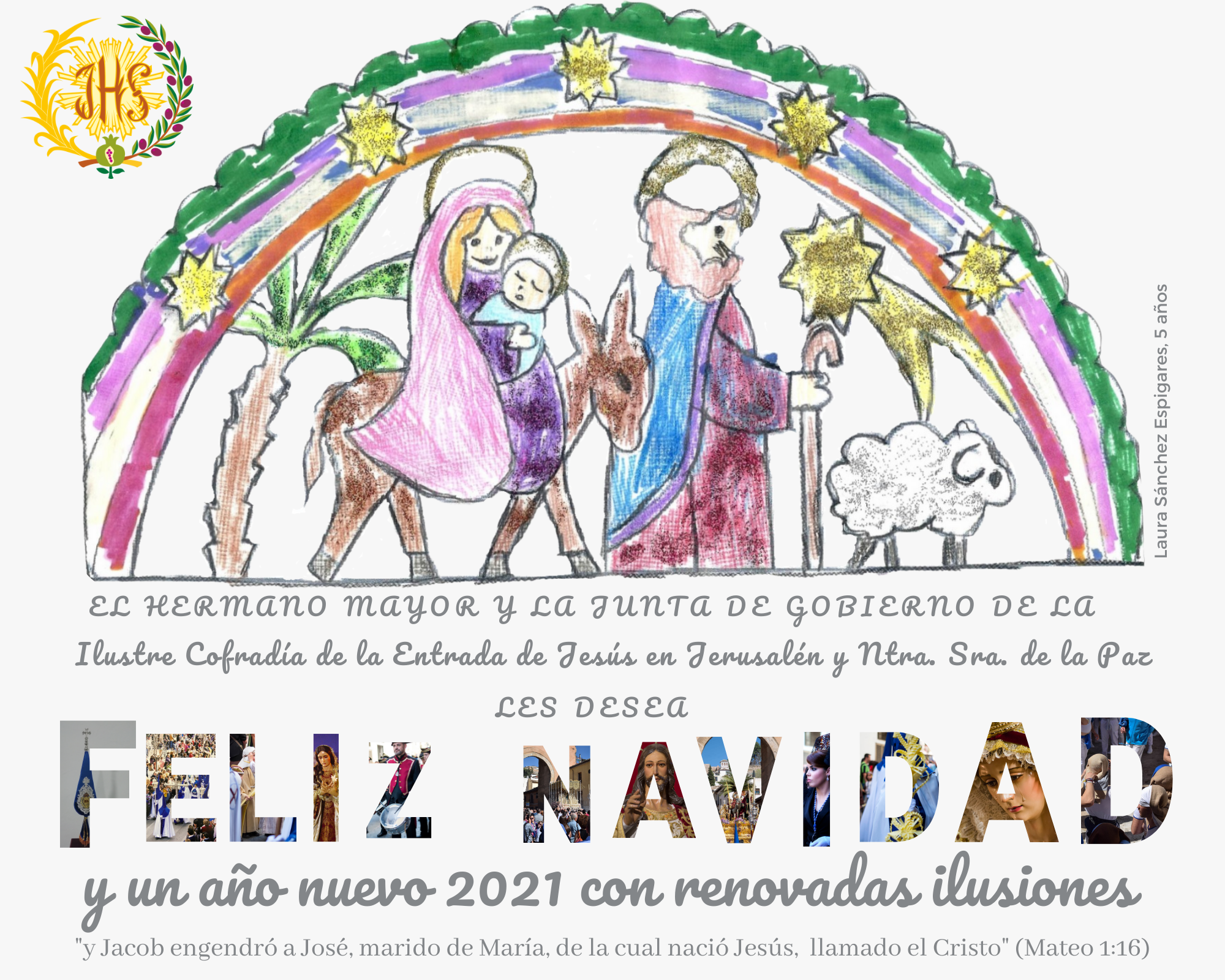 El Hermano Mayor y la Junta de Gobierno de la Ilustre Cofradía de la Entrada de Jesús en Jerusalén y Ntra. Sra. de la Paz desea una Feliz Navidad a tod@s sus herman@s, allegados, instituciones y demás Hermandades y Cofradías de Granada.