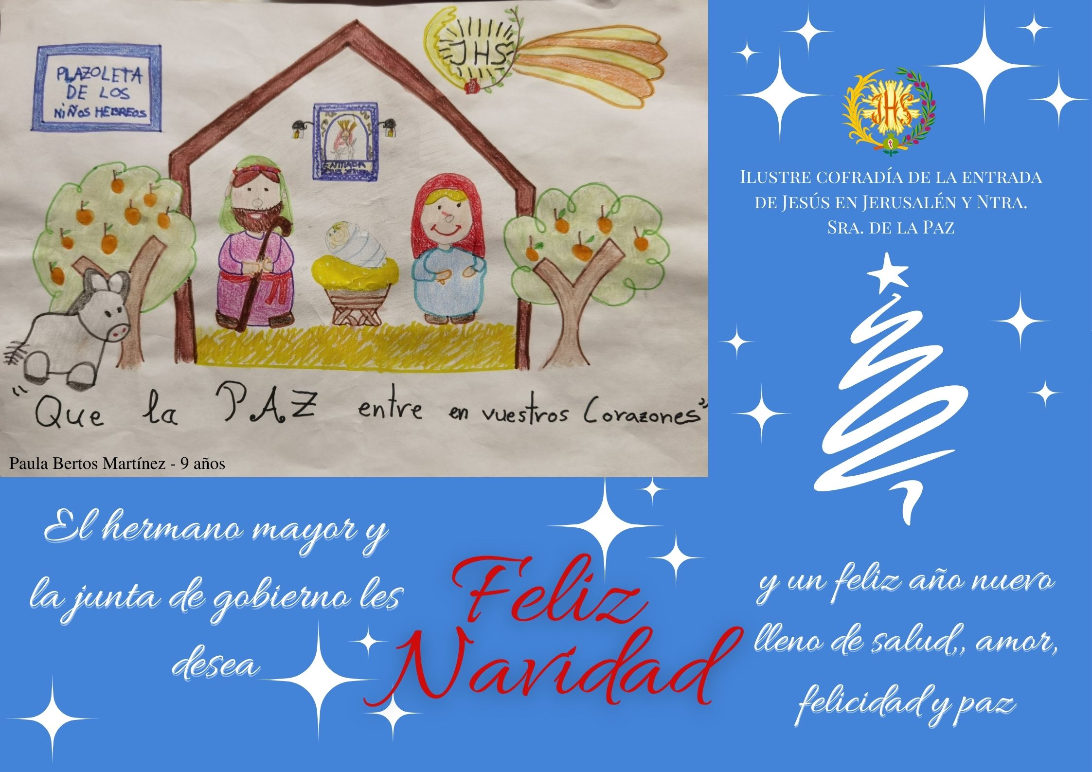 El Hermano Mayor y la Junta de Gobierno de la Ilustre Cofradía de la Entrada de Jesús en Jerusalén y Nuestra Señora de la Paz, les deseamos, de todo corazón, nuestros mejores deseos en estas fechas tan entrañables, que paséis unas felices navidades y un próspero año nuevo 2023, lleno de grandes momentos.