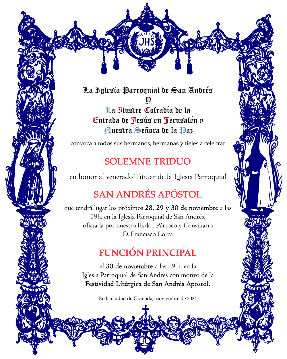 Os invitamos a todos los hermanos y hermanas a compartir la Festividad de San Andrés junto a toda la Parroquia.