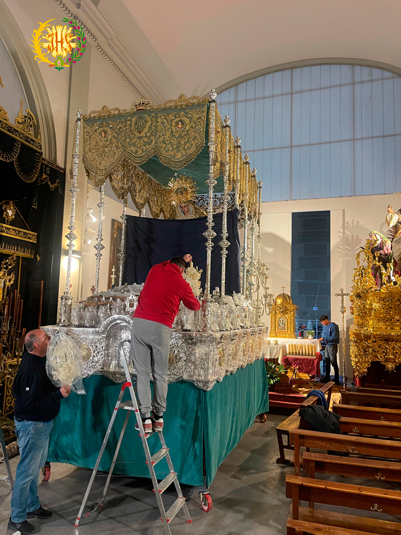 El equipo de priostía y albacería llevan unos días de muchísimo trabajo siempre con la ayuda de otros herman@s.