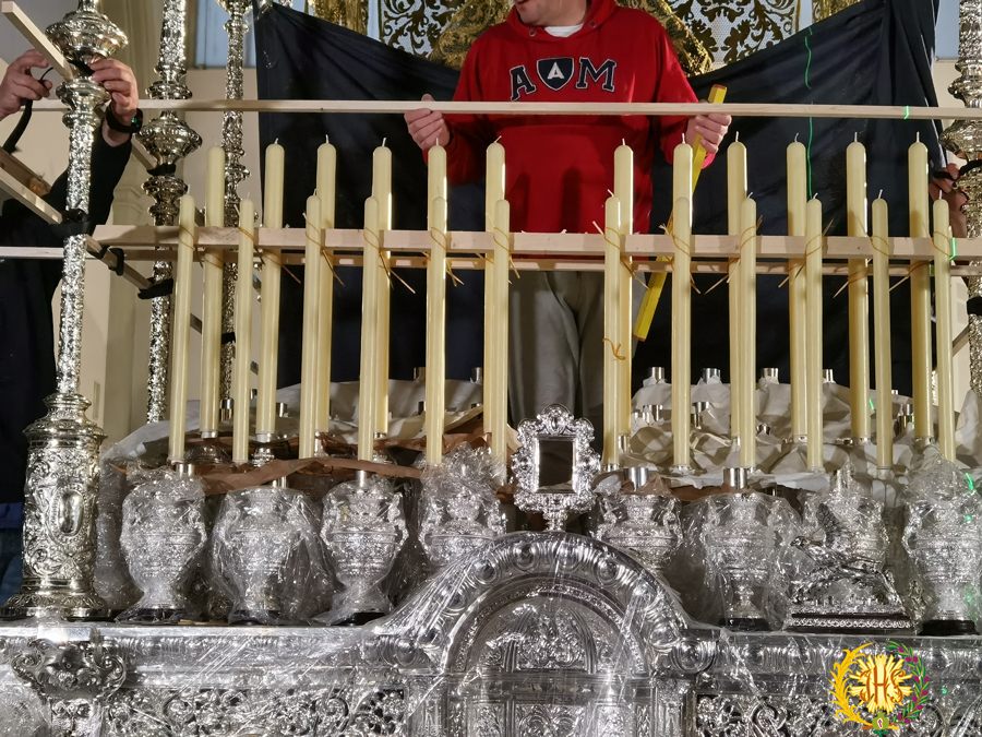 El sábado 16 de marzo se procedió a la fundición de cera y colocación de la candelería que ilumina la cara de Nuestra Señora de la Paz y los candelabros del paso de misterio de Jesús de la Entrada de Jesús en Jerusalén.