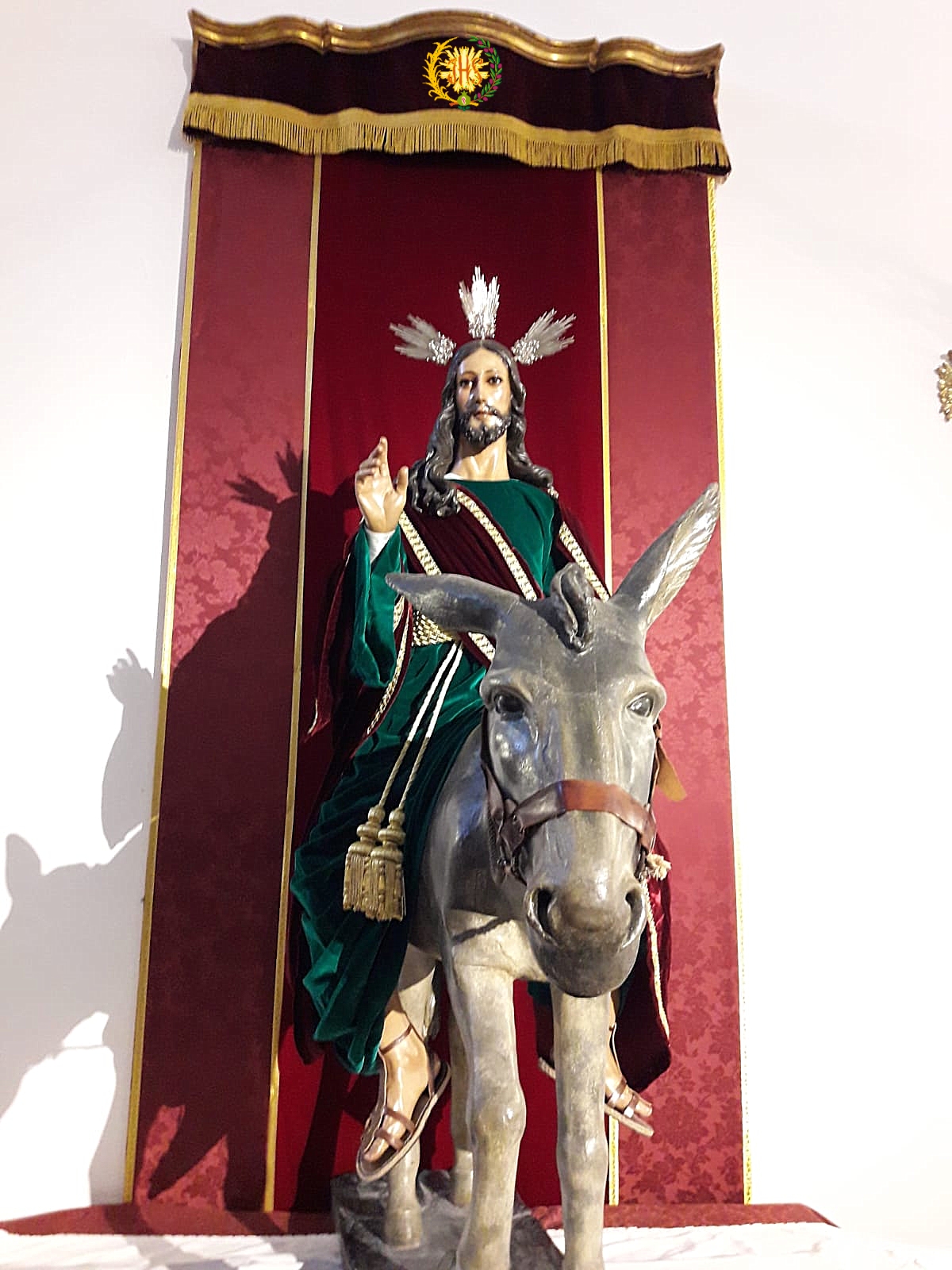 El Señor de la Entrada en Jerusalén, en el tiempo de "Las Glorias de María", se presenta con cíngulo en oro fino y mantolín de terciopelo de seda Burdeos. #GloriasdeMaría #BorriquillayPaz #Borriquilla