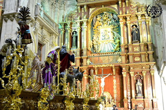 Imágenes del retranqueo en el que los Titulares quedaron a ambos lados del Altar Mayor para presidir el Tríduo y la Función Principal de Palmas dando así comienzo al Domingo de Ramos.