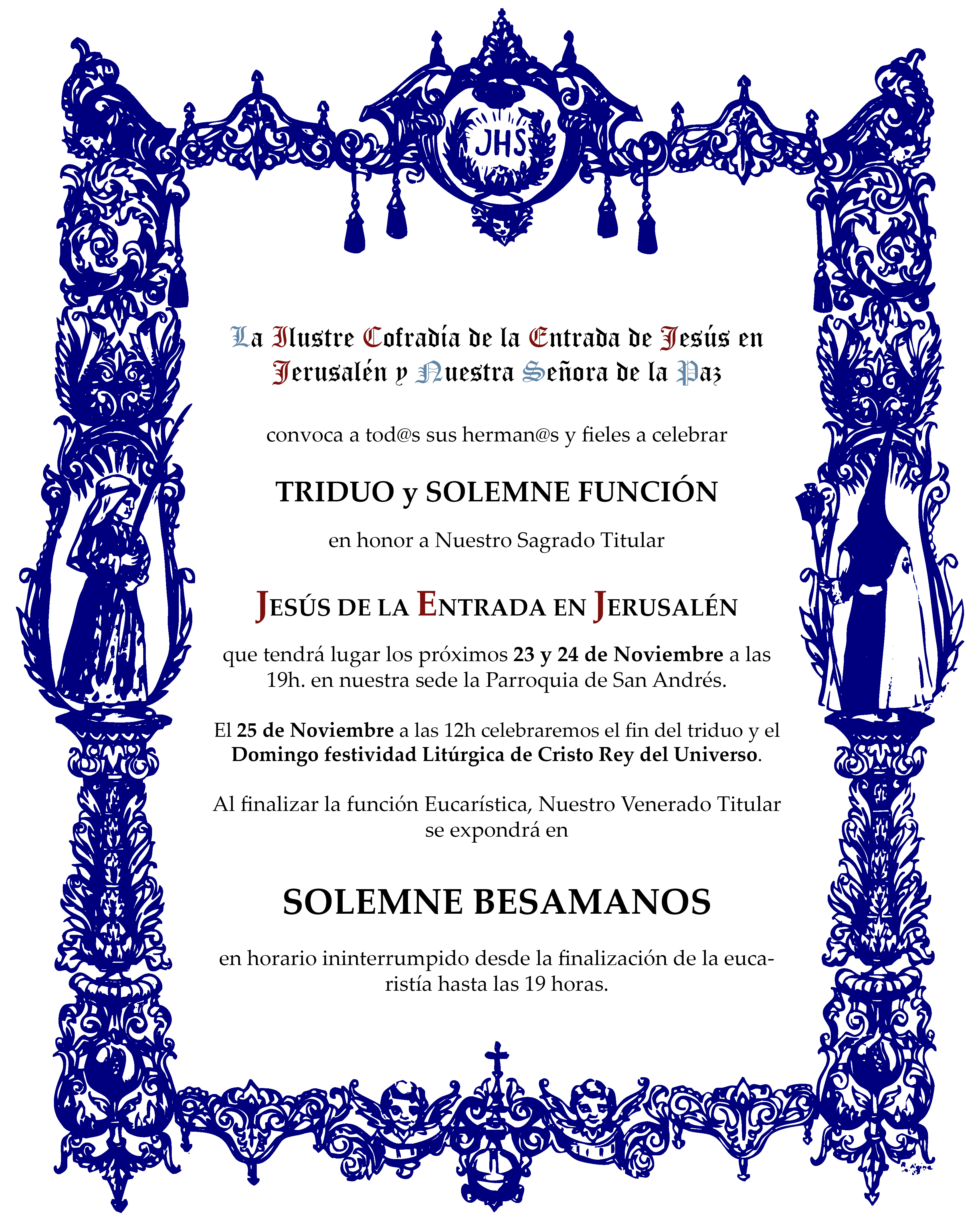 Triduo en Honor a nuestro Sagrado Titular Jesús de la Entrada en Jerusalén. 23, 24 y 25 de noviembre
