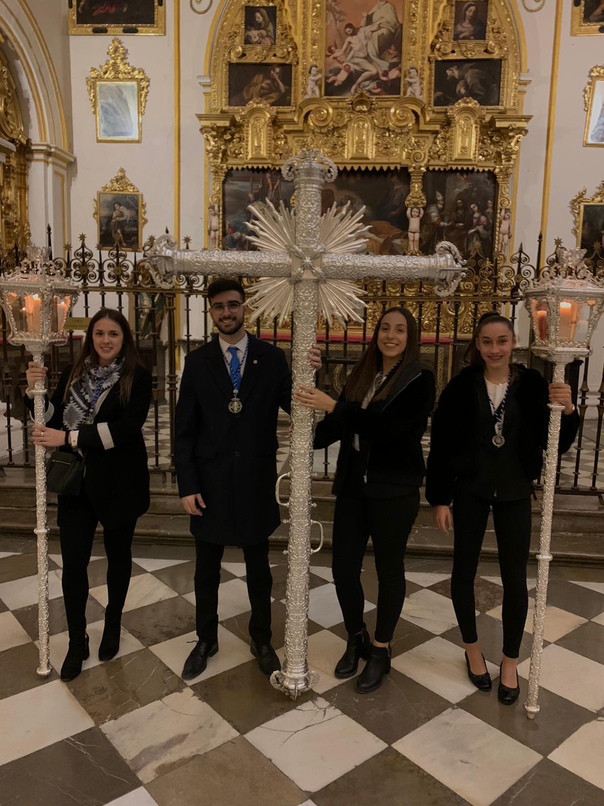 Allí se encontraba una representación del grupo joven portando la Cruz Guía y dos faroles presidiendo la Segunda Estación del Vía Crucis. Con sumo recogimiento se desarrollaba este rezo que culminaba al filo de las nueve y media de la noche.