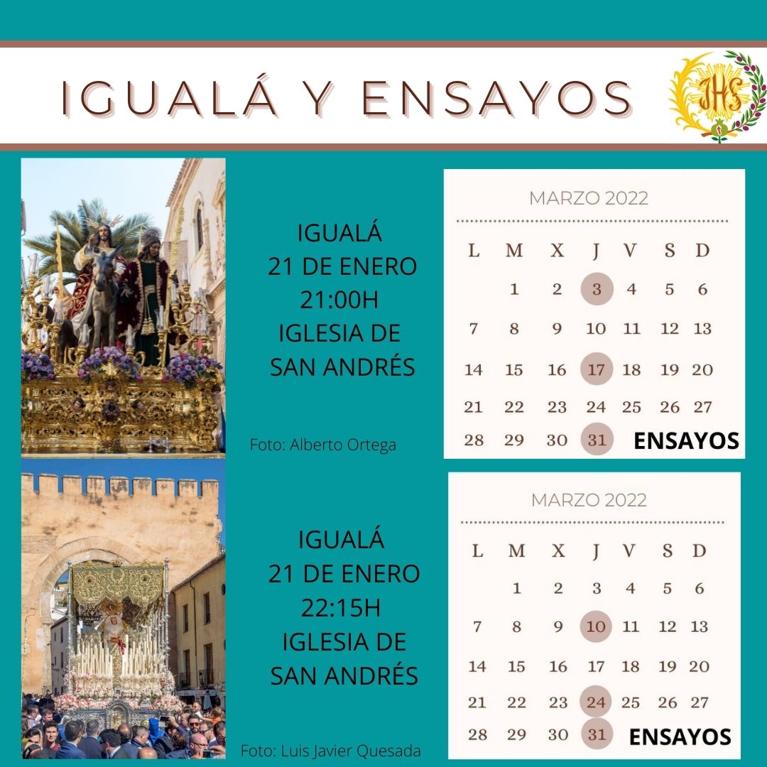 El capataz general, Alberto Ortega, convoca a todos los costaleros de la Ilustre Cofradía de la Entrada de Jesús en Jerusalén y Ntra. Sra. de la Paz, así como a los costaleros aspirantes a la igualá general del próximo 21 de enero del 2022 en la Iglesia de San Andrés Apóstol.