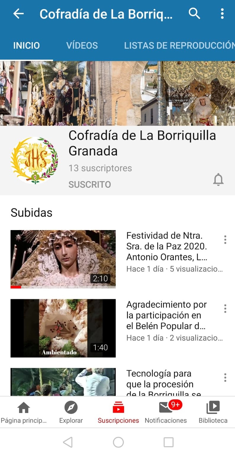 El canal se llama "Cofradía de la Borriquilla Granada".