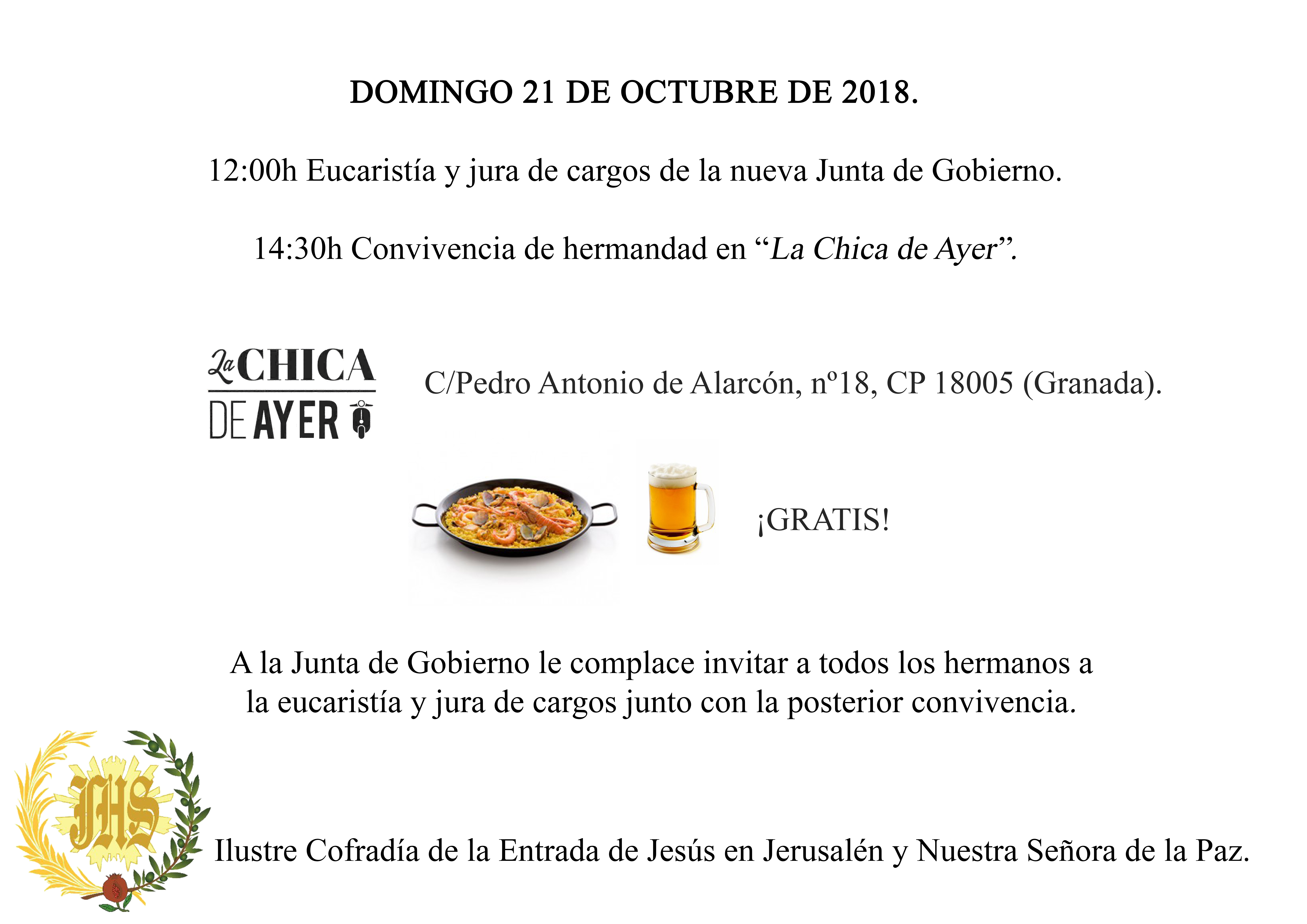 Posteriormente, tendremos una CONVIVENCIA para TODA LA COFRADÍA en “La Chica de Ayer”.