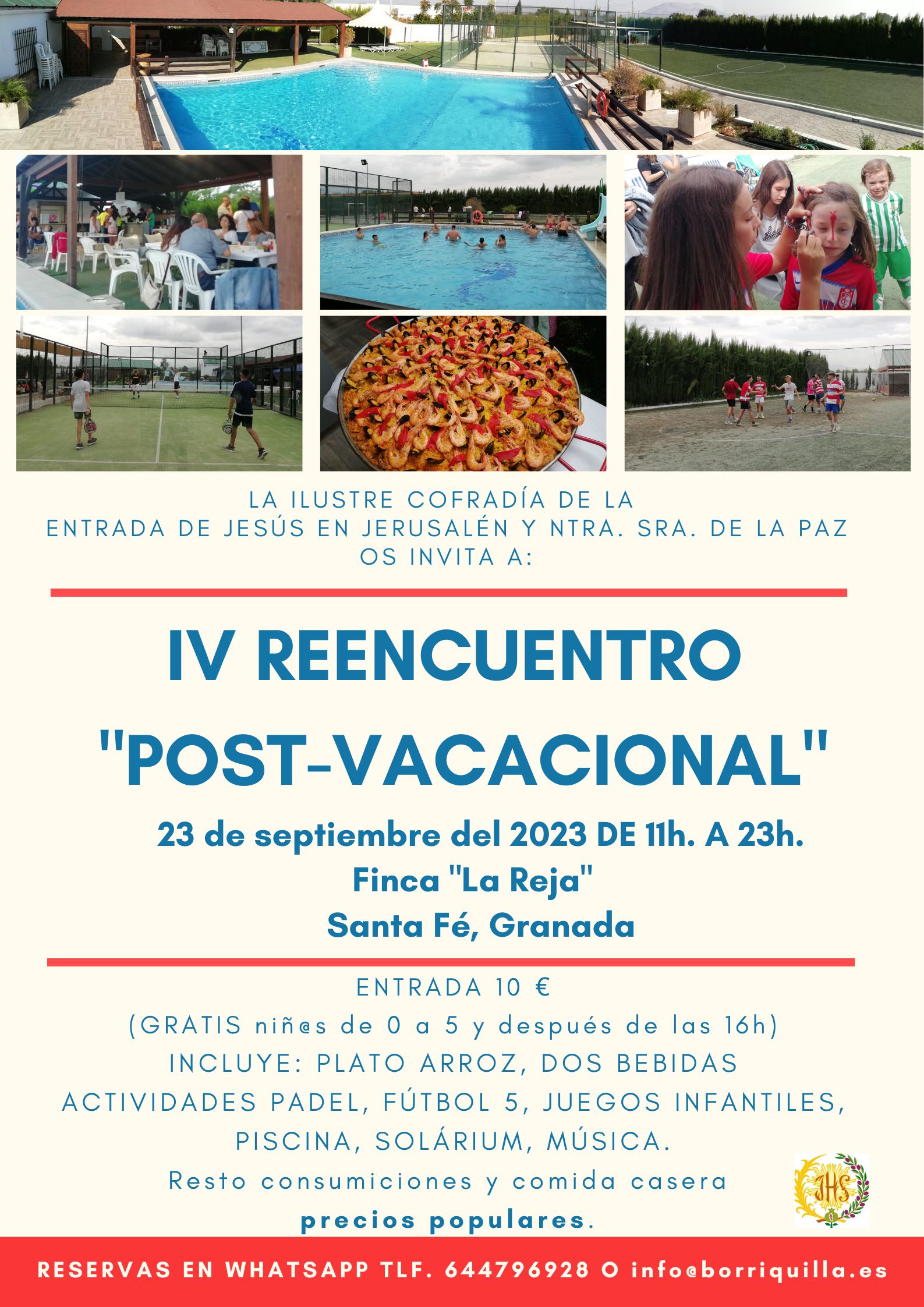 Llega el "IV REENCUENTRO POST - VACACIONAL de La Borriquilla"; una convivencia de herman@s de la cofradía, familia, amig@s, cofrades, simpatizantes y todo aquel que tenga ganas de fiesta y diversión en un buen ambiente.