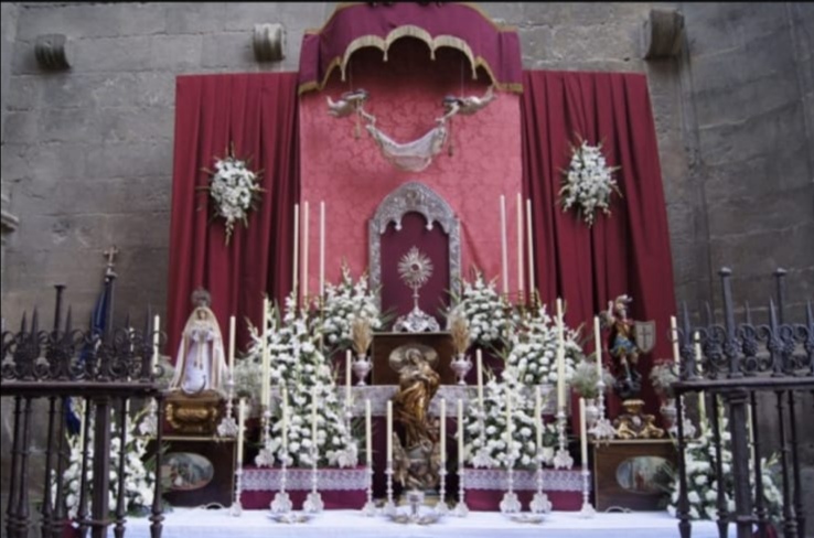 En este post además de hacer un poco de historia de esta festividad queremos recordar algunos de los Altares que nuestra cofradía ha montado en diferentes años en Granada en el Pie de la Torre y por los que llegaron a recibir diferentes premios por el Excmo. Ayuntamiento de Granada. (Las fotos son de los años 2007, 2008, 2009, 2011, 2013, 2015, 2016 y 2017).