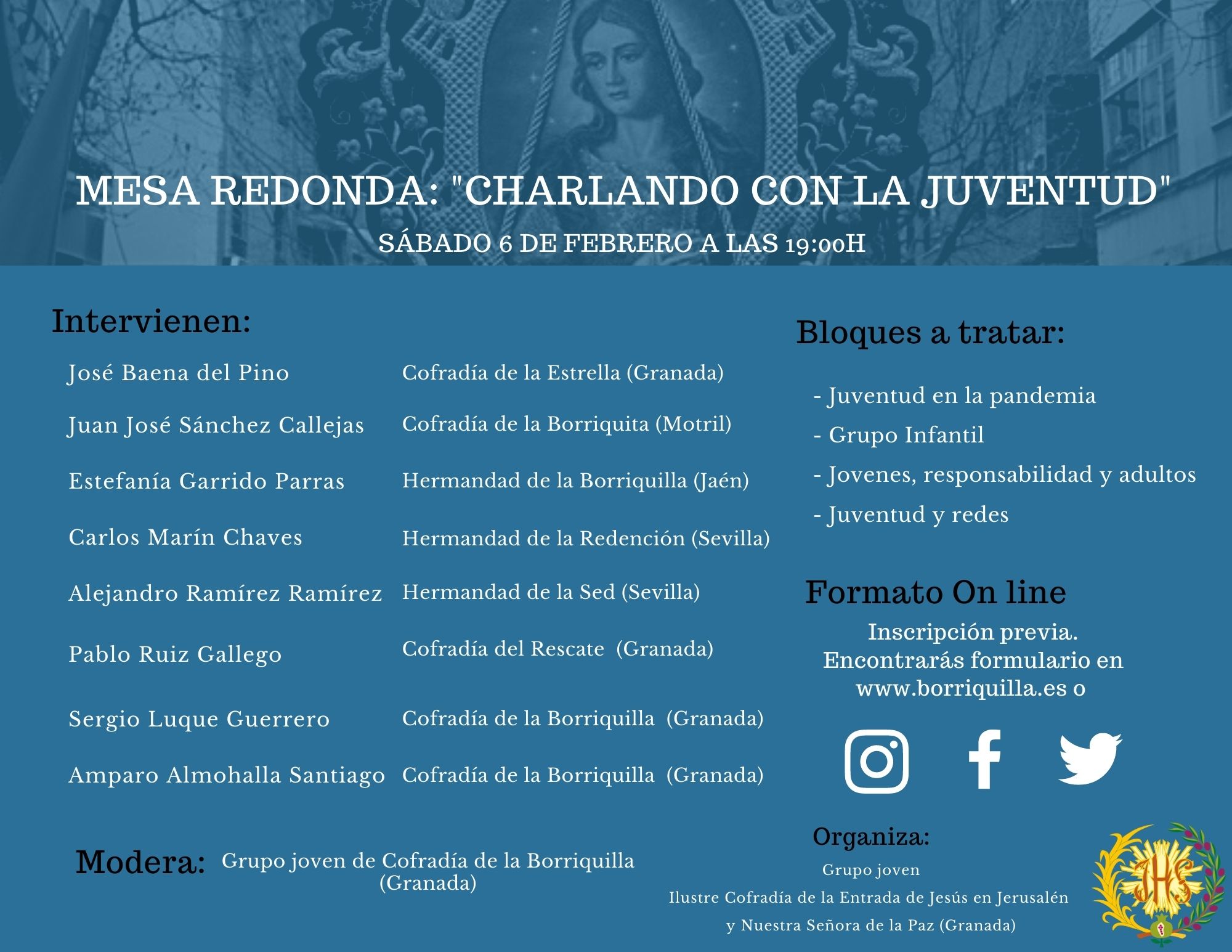 La mesa redonda será moderada por el grupo joven de nuestra cofradía, y las personas que van a intervenir son: