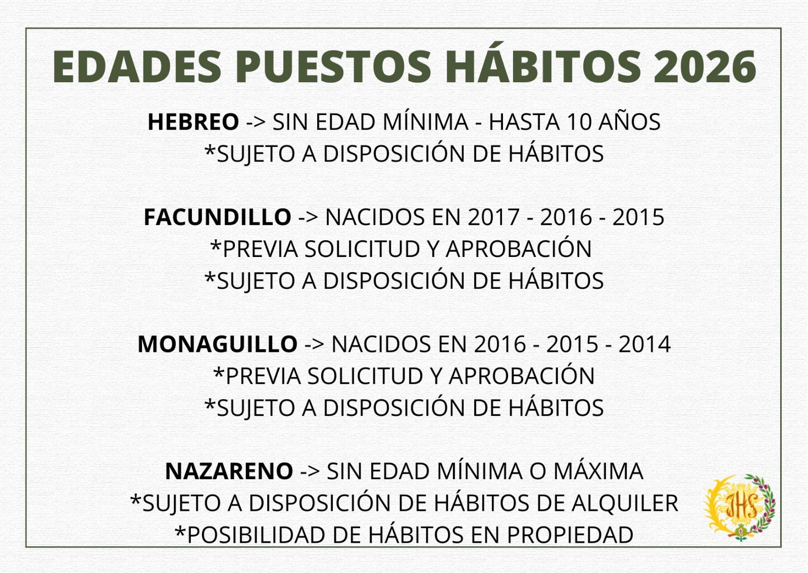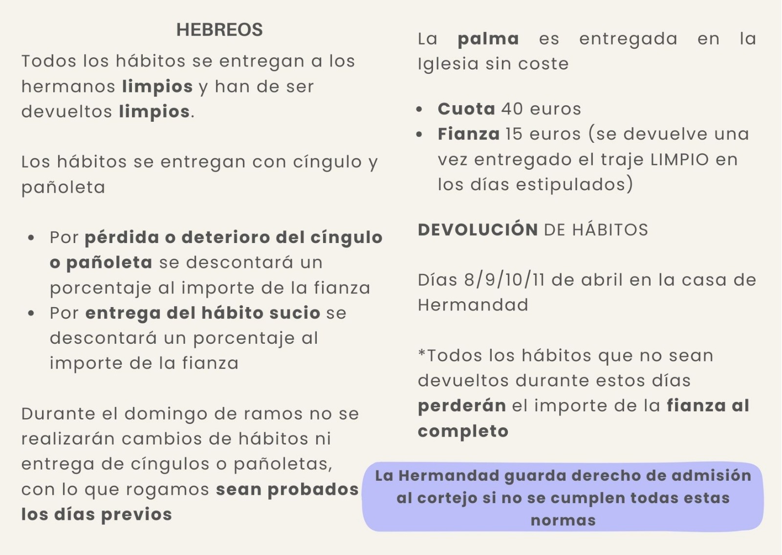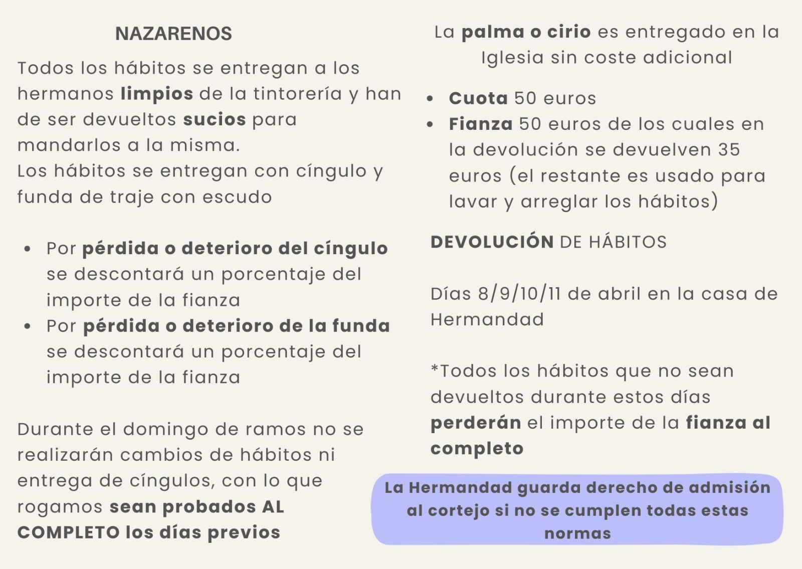Es muy importante que leais todas las normas para la estación de penitencia. Mirar bien los dibujos y las fotos dónde viene todo bien explicado.