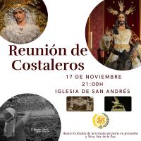 CONVOCATORIA: REUNIÓN CUERPO DE COSTALEROS DE JESÚS EN LA ENTRADA EN JERUSALÉN Y NTRA. SRA. DE LA PAZ