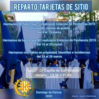 REPARTO DE HÁBITOS Y TARJETAS DE SITIO PARA LA ESTACIÓN DE PENITENCIA DEL DOMINGO DE RAMOS DEL 2020