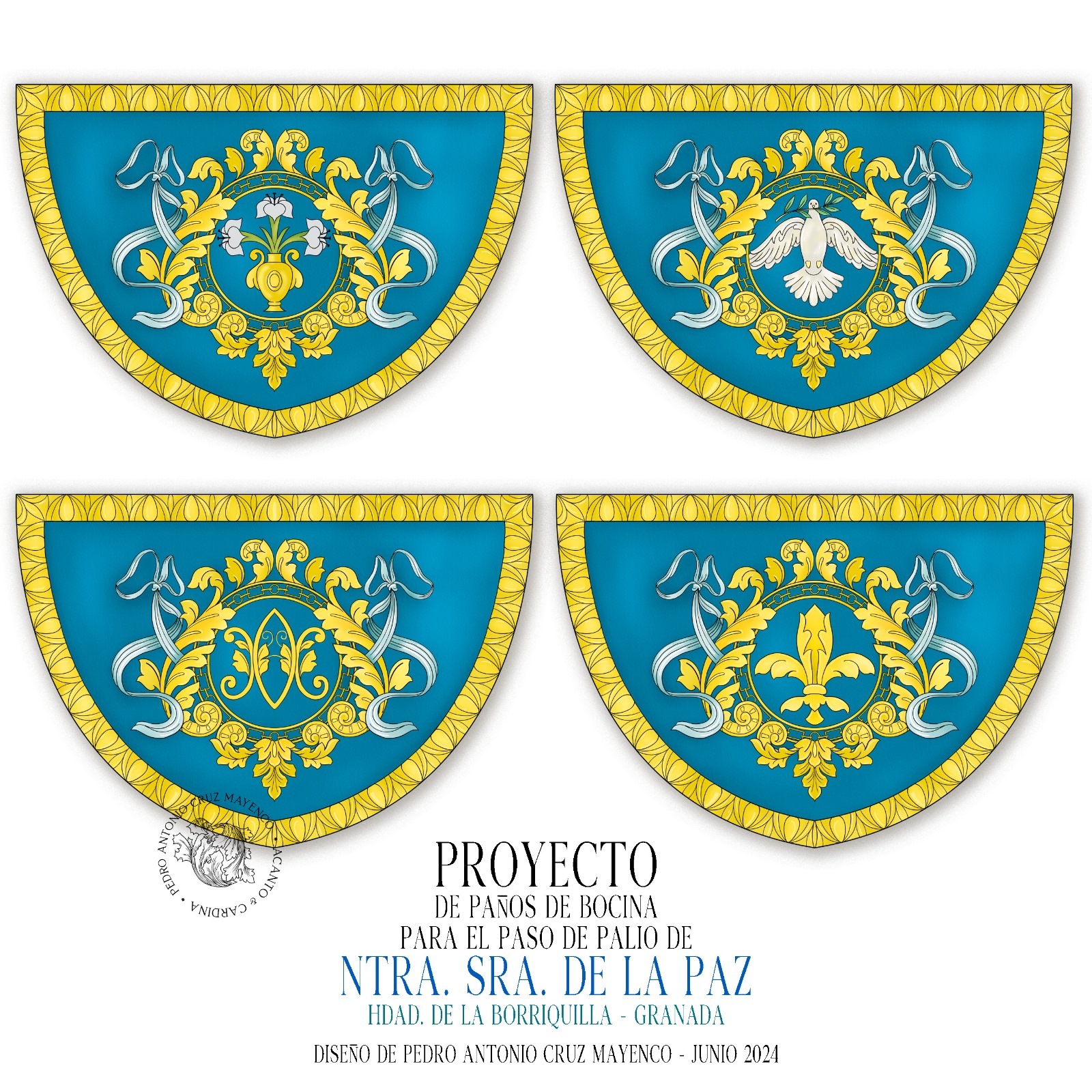 El conjunto estará compuesto por dos juegos de paños de bocina: cuatro destinados al paso de misterio de Jesús de la Entrada en Jerusalén y cuatro para el paso de palio de Nuestra Señora de la Paz.