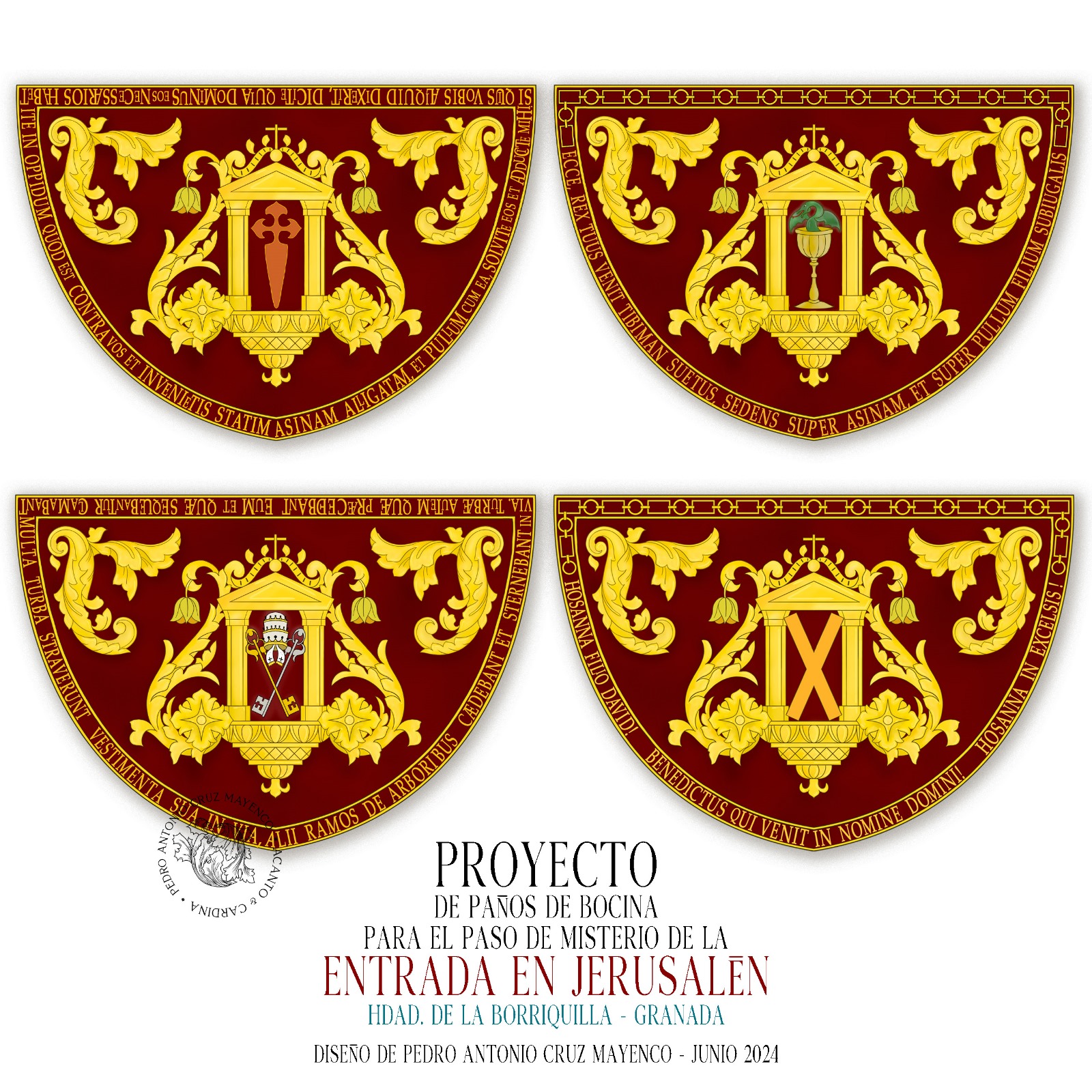Con gran alegría e ilusión, presentamos un nuevo e ilusionante proyecto de enriquecimiento patrimonial. Se trata de la realización de las bocinas y paños de bocina para el paso de misterio y para el paso de palio, un trabajo que aúna diseño, tradición y devoción.