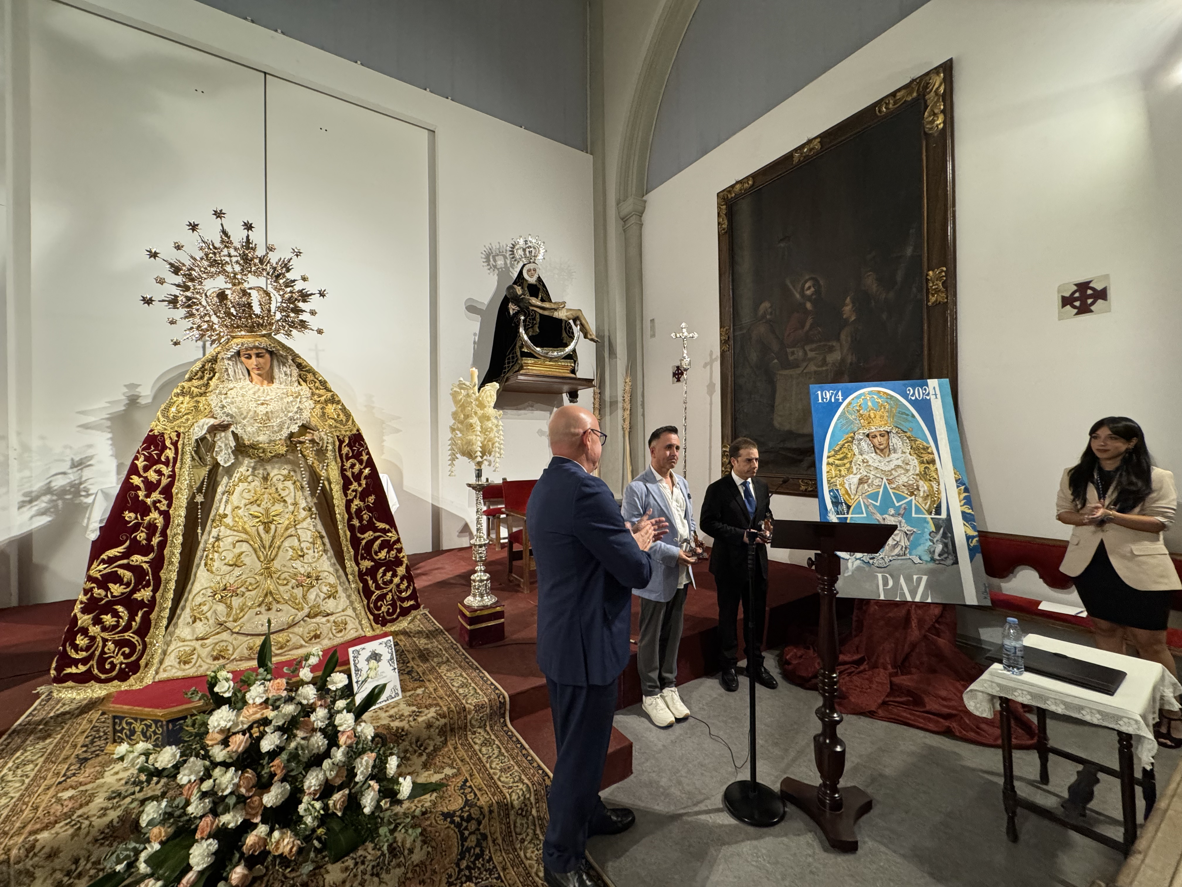 El pasado 22 de septiembre, tras la exaltación a Ntra. Sra. de la Paz, D. Manuel Obregón, hermano costalero de Ntra. Sra. de la Paz y pintor reconocido, procedió a una donación artística que va a dejar huella en nuestra cofradía. En este 50 aniversario de Nuestra Señora de la Paz, no podía faltar una obra que, a través de los colores y las formas, inmortalice esta fecha tan significativa y nos recuerde el amor y la devoción que profesamos hacia nuestra Madre.