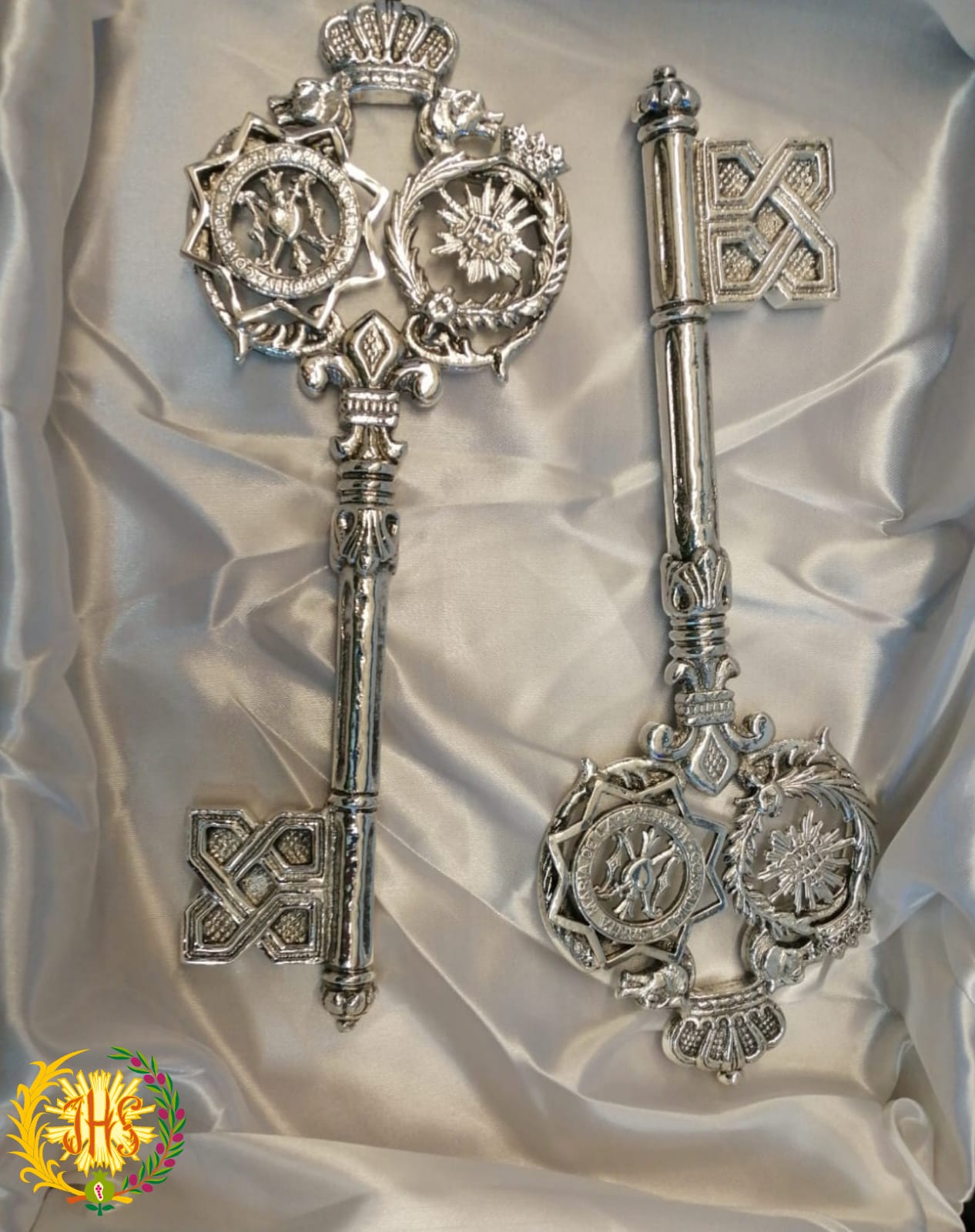 La Junta de Gobierno ha querido, antes de terminar su mandato, replicar la llave de nuestros hermanos de la Alhambra en los talleres de Paula Orfebre. Idénticas llaves que se diferencian en la posición de los escudos, siendo la nuestra la que tiene el escudo a la derecha.