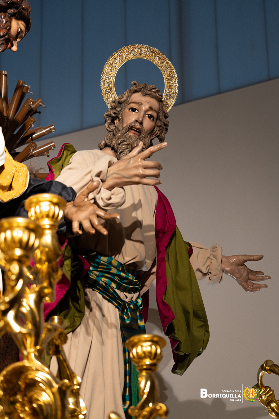 Las imágenes secundarias del misterio de Jesús de la entrada en Jerusalén estrenan ropajes nuevos. Túnicas elaboradas en terciopelo de diferentes colores y mantolines en terciopelo y tana de colores. Los fajines están elaborados con tafetán de colores. La representación se ha basado cuadros antiguos de imágenes de apóstoles. Los ropajes están presentados para generar el efecto visual de movimiento.