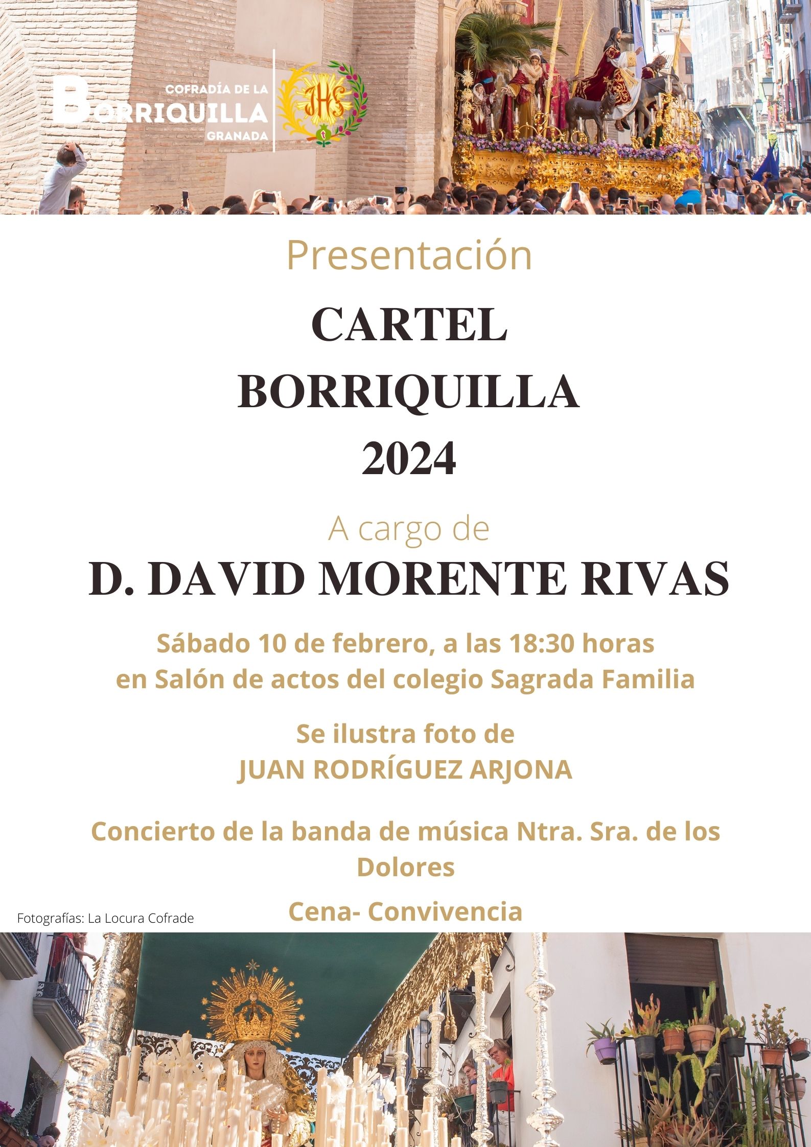 La presentación del cartel oficial de la Cofradía para el Domingo de Ramos 2024 correrá a cargo de D. David Morente Rivas.