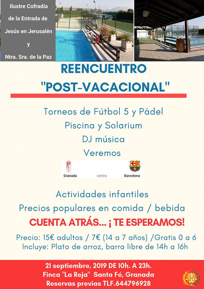 Porque las vacaciones deberían de ser un estado de ánimo continuo, "La Borriquilla" os recordamos el "REENCUENTRO POST - VACACIONAL"; una convivencia de herman@s, amig@s y todo aquel que tenga ganas de fiesta y diversión en un buen ambiente.
