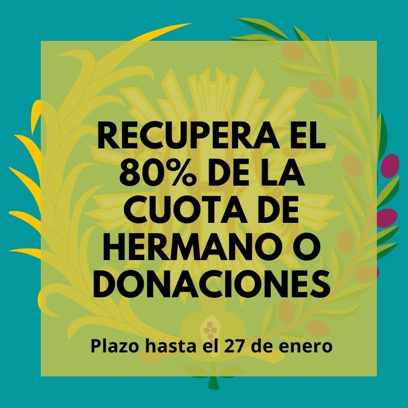 Un año más os informamos de cómo y cuánto nos podemos deducir de la cuota de hermano u otras donaciones realizadas a la Ilustre Cofradía de la Entrada de Jesús en Jerusalén y Ntra. Sra. de la Paz durante el 2022, como por ejemplo donaciones para coronitas, guión hermandad...: