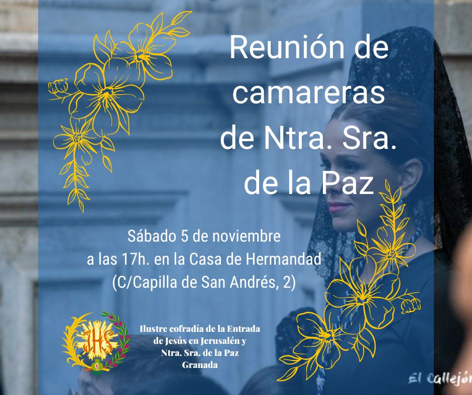 Informamos el que próximo sábado 5 de noviembre del 2022 hay reunión de camareras de Ntra. Sra. de la Paz.