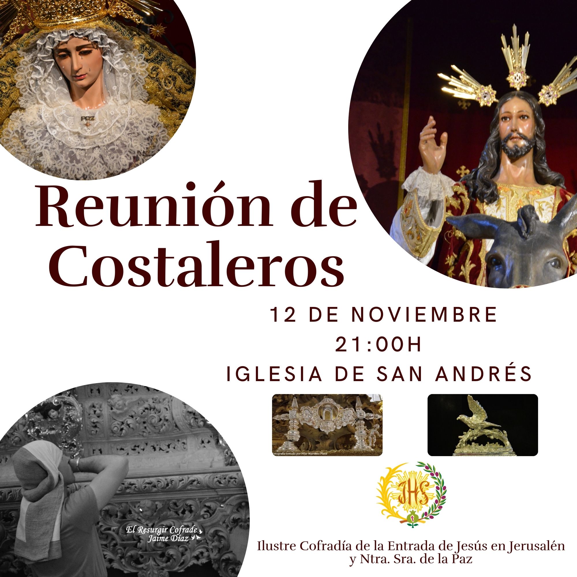 El capataz general, D. Alberto Ortega, y el Hermano Mayor, D. José Antonio Gámiz, convocan a todos los costaleros a una reunión, el próximo 12 de noviembre a las 21:00 horas en la Iglesia de San Andrés Apóstol.