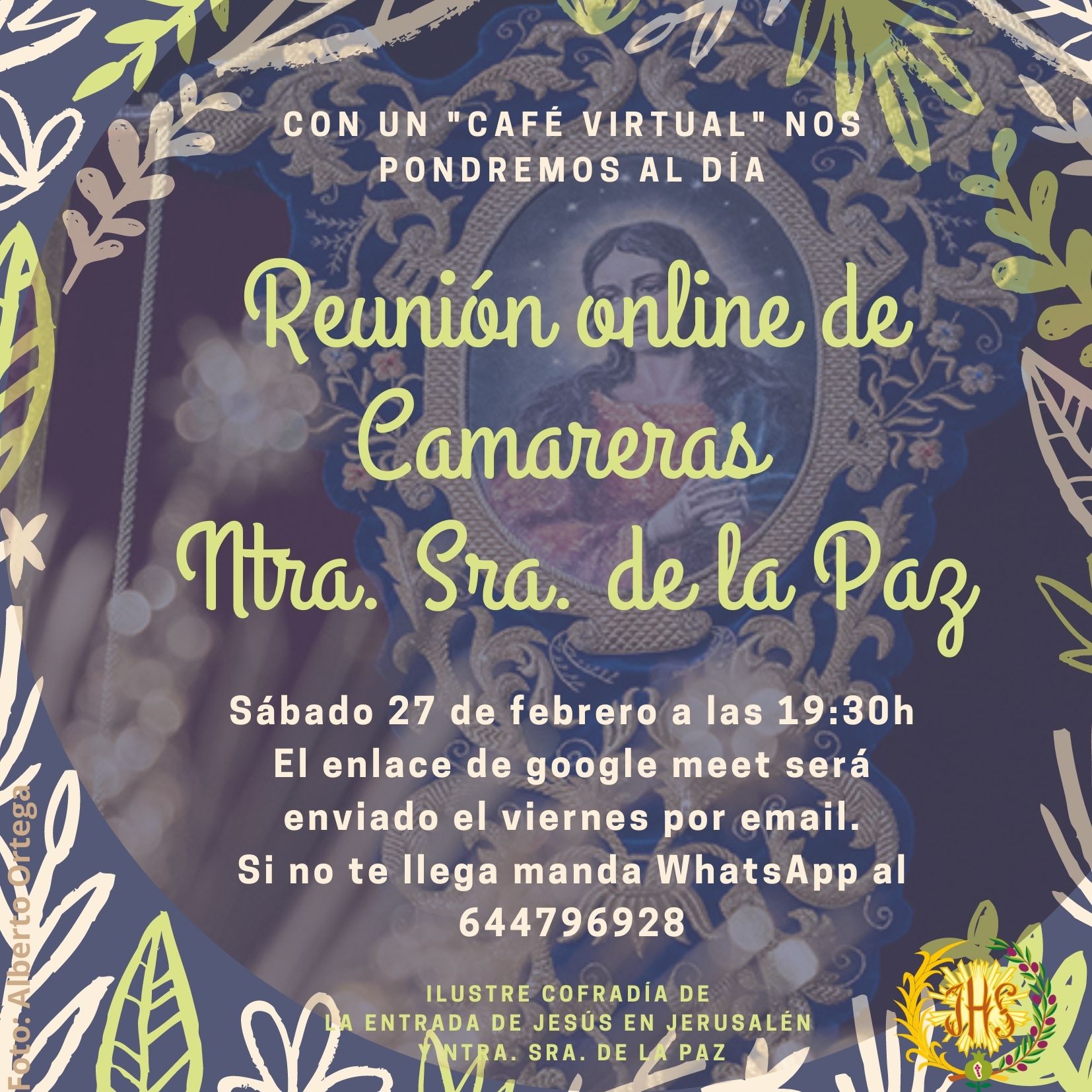 Convocamos a todas las camareras de Ntra. Sra. de la Paz a una reunión virtual el próximo sábado 27 de febrero a las 19:00H a través de la plataforma Google Meet.