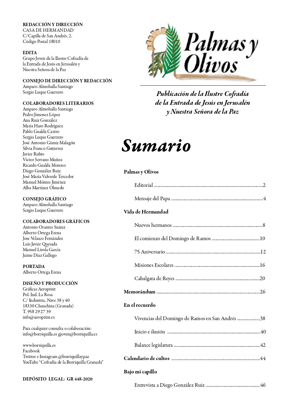 En esta edición podrás leer de interés histórico, recordar momentos únicos vividos el año pasado el Domingo de Ramos, revivir hechos emotivos como la cabalgata de reyes mayos o las misiones escolares, conocer algunas cuestiones de la albacería o analizar todas las actividades que realiza la cofradía durante un año.