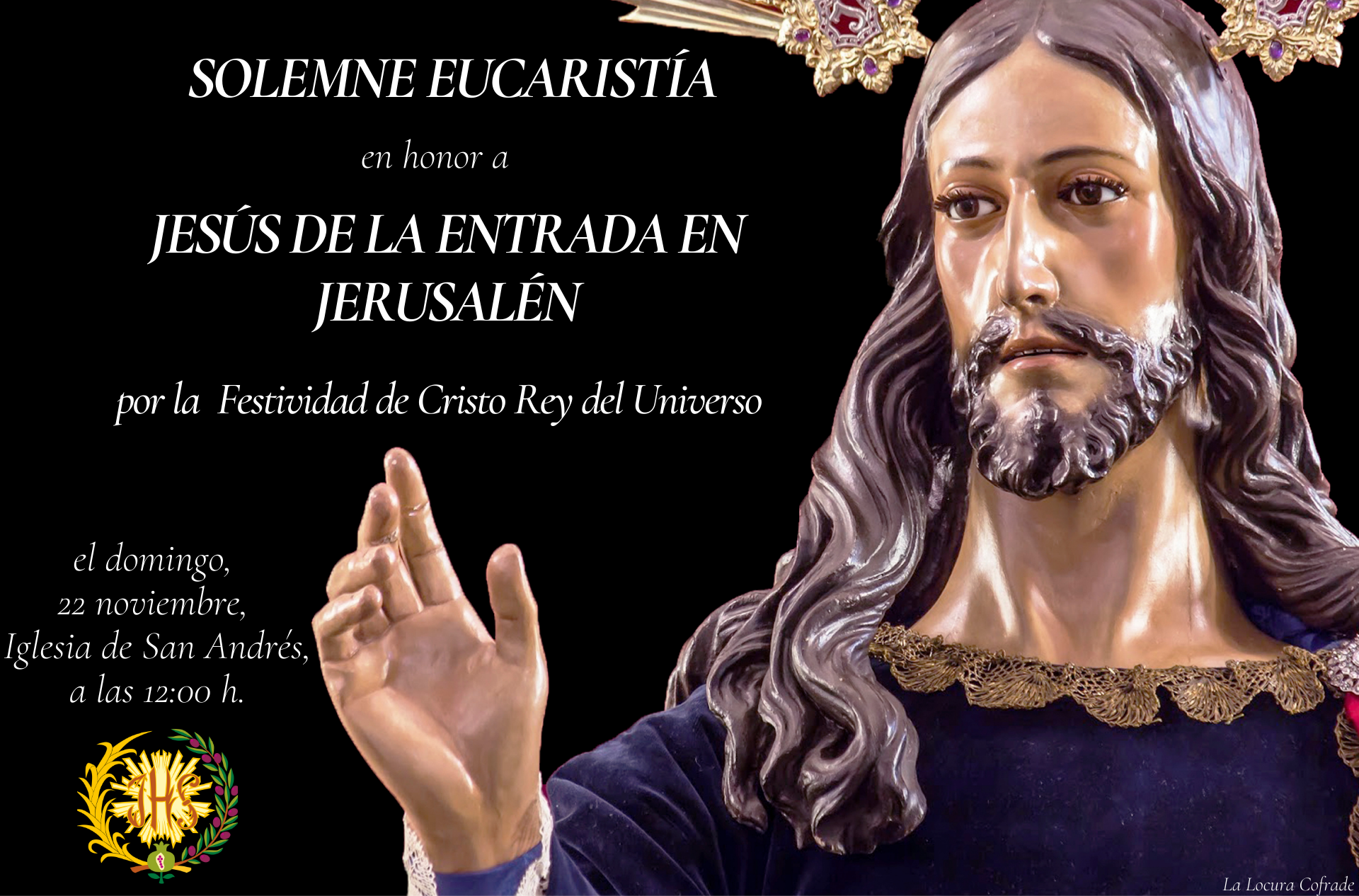 Nuestra cofradía celebra el próximo domingo, 22 de noviembre, la solemne eucaristía en honor a Jesús de la Entrada en Jerusalén con motivo de la festividad litúrgica de Cristo Rey del Universo en la Iglesia de San Andrés.