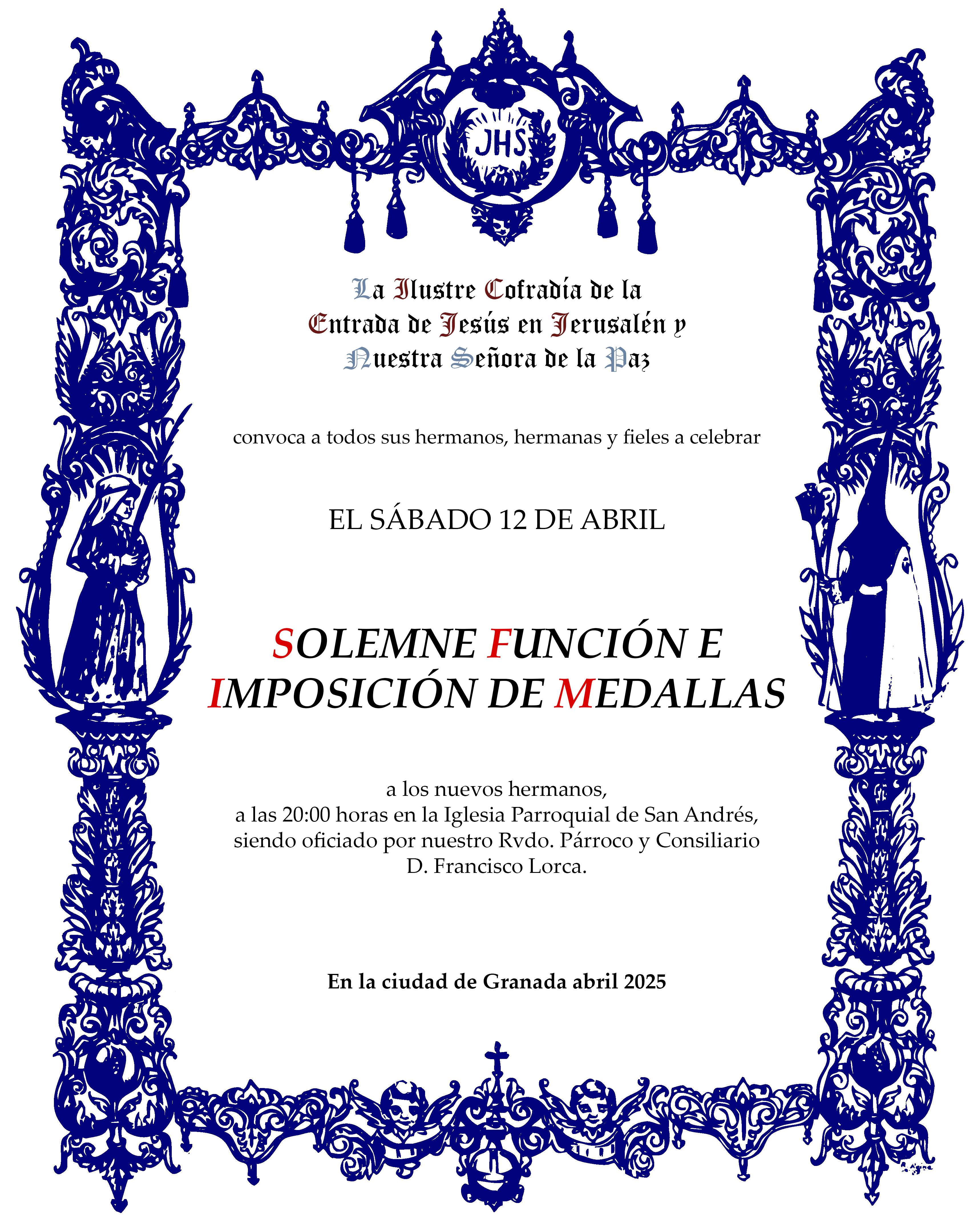 Un año más convocamos a tod@s l@s herman@s a la función solemne e imposición de medallas a los nuevos hermanos.