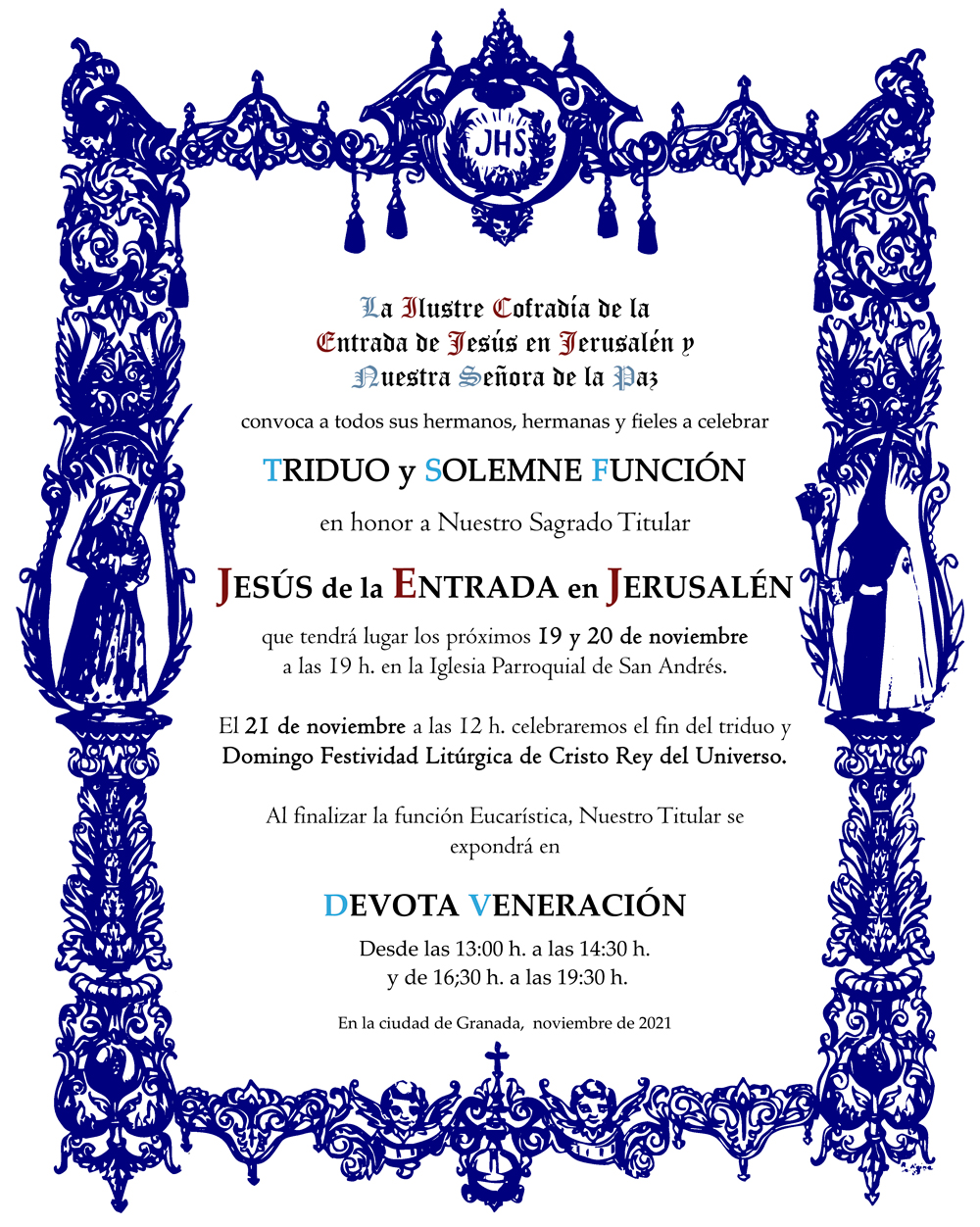 TRIDUO EN HONOR A NUESTRO SAGRADO TITULAR JESÚS DE LA ENTRADA EN JERUSALÉN,