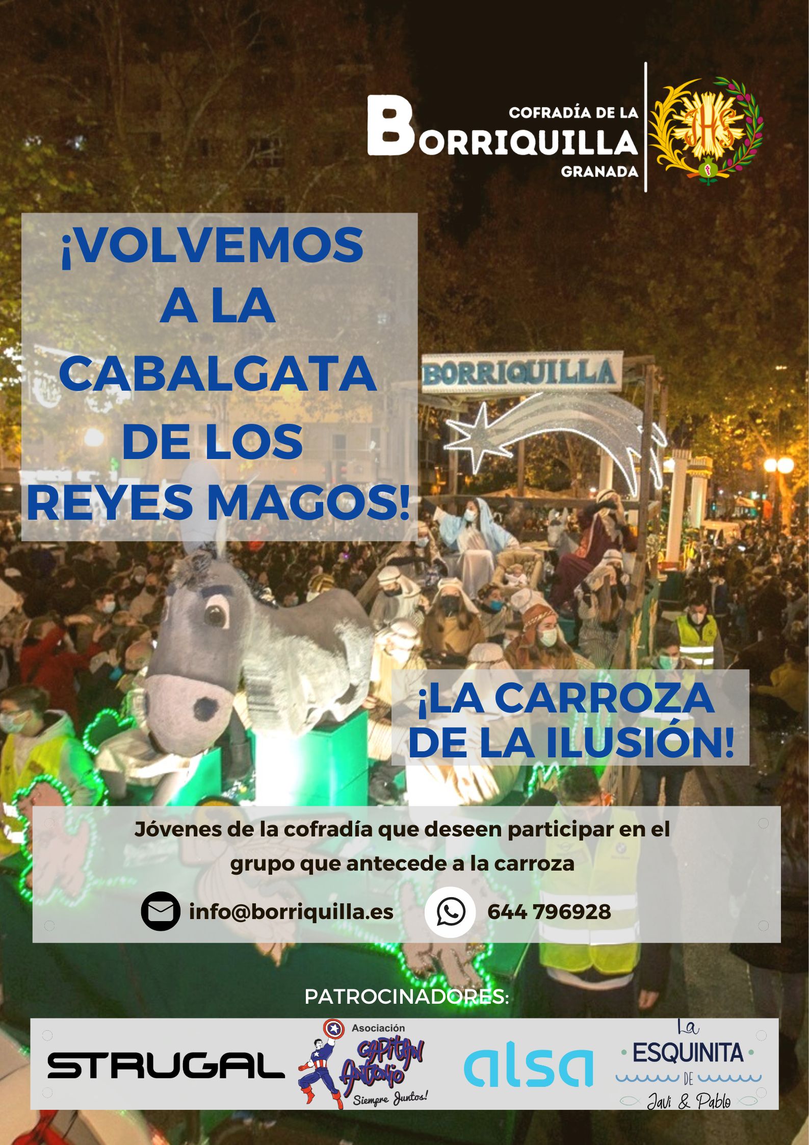 Además, la carroza de la Borriquilla irá precedida de un pequeño cortejo de niñ@s de nuestra cofradía vestidos también de hebreos animando, bailando y repartiendo algunas sorpresas. Todos aquellos que estéis interesados podéis enviar email a info@borriquilla.es o whatsapp al tlf. 644 79 69 28 antes del próximo día 24/12/2022.